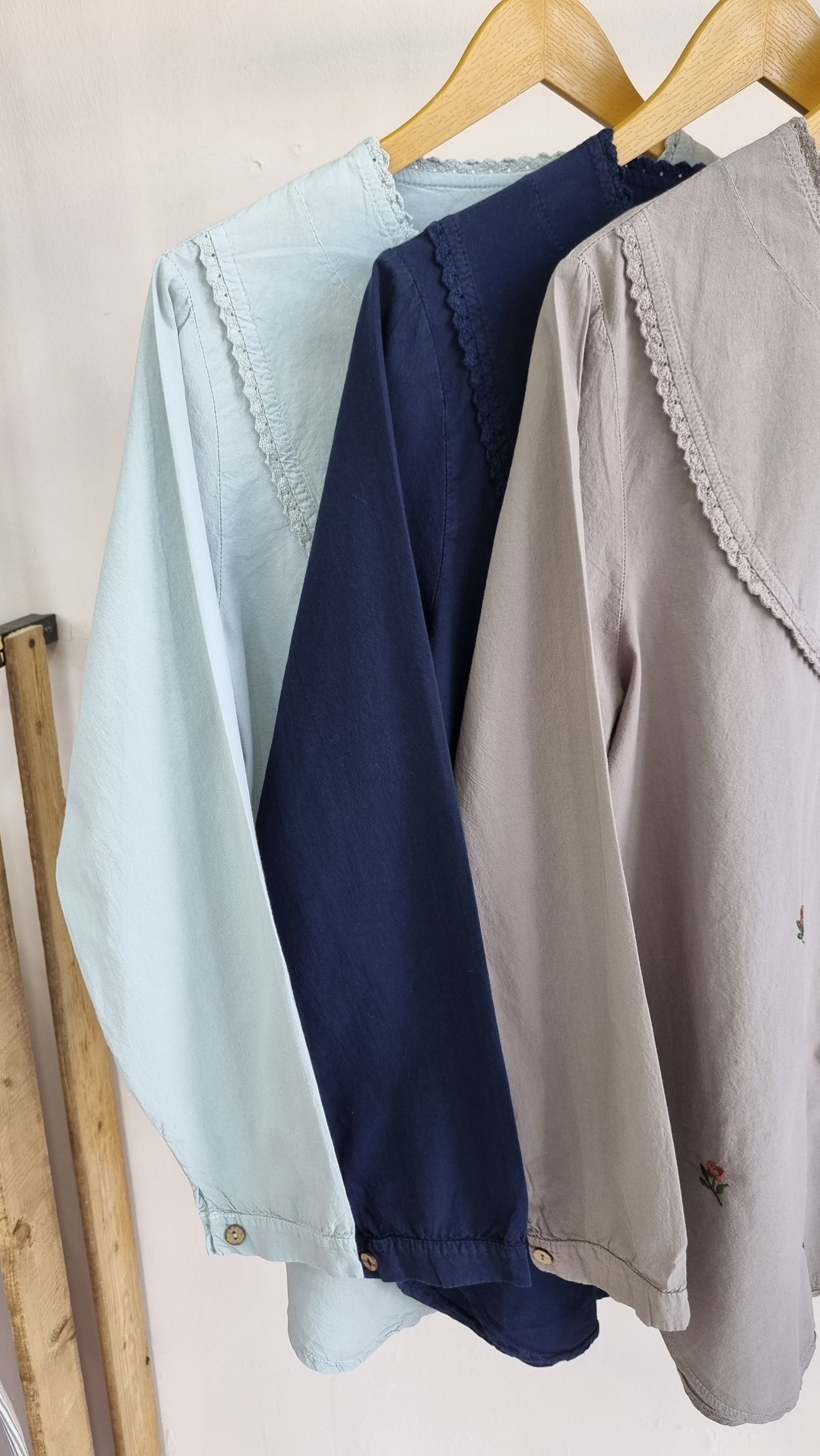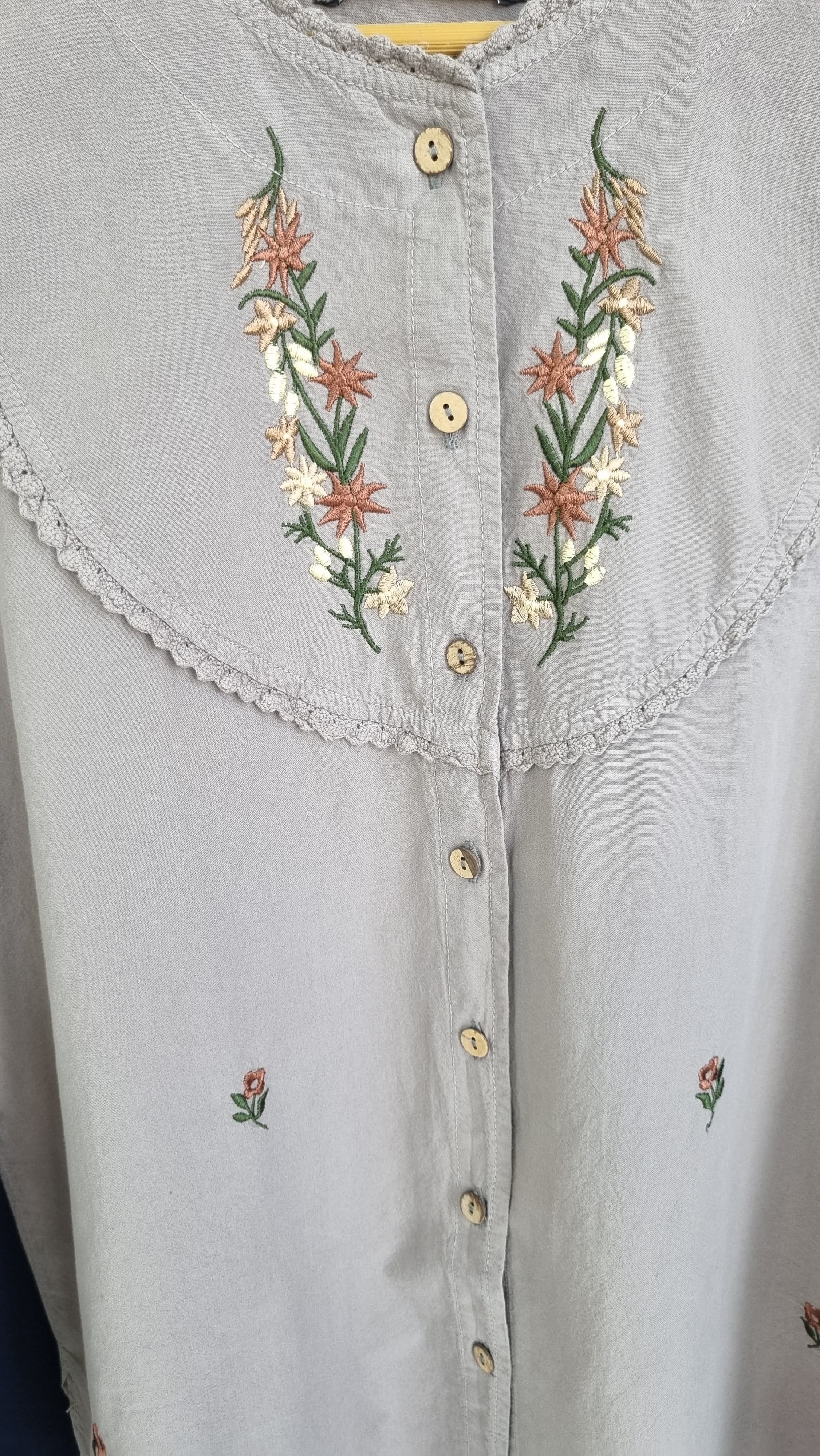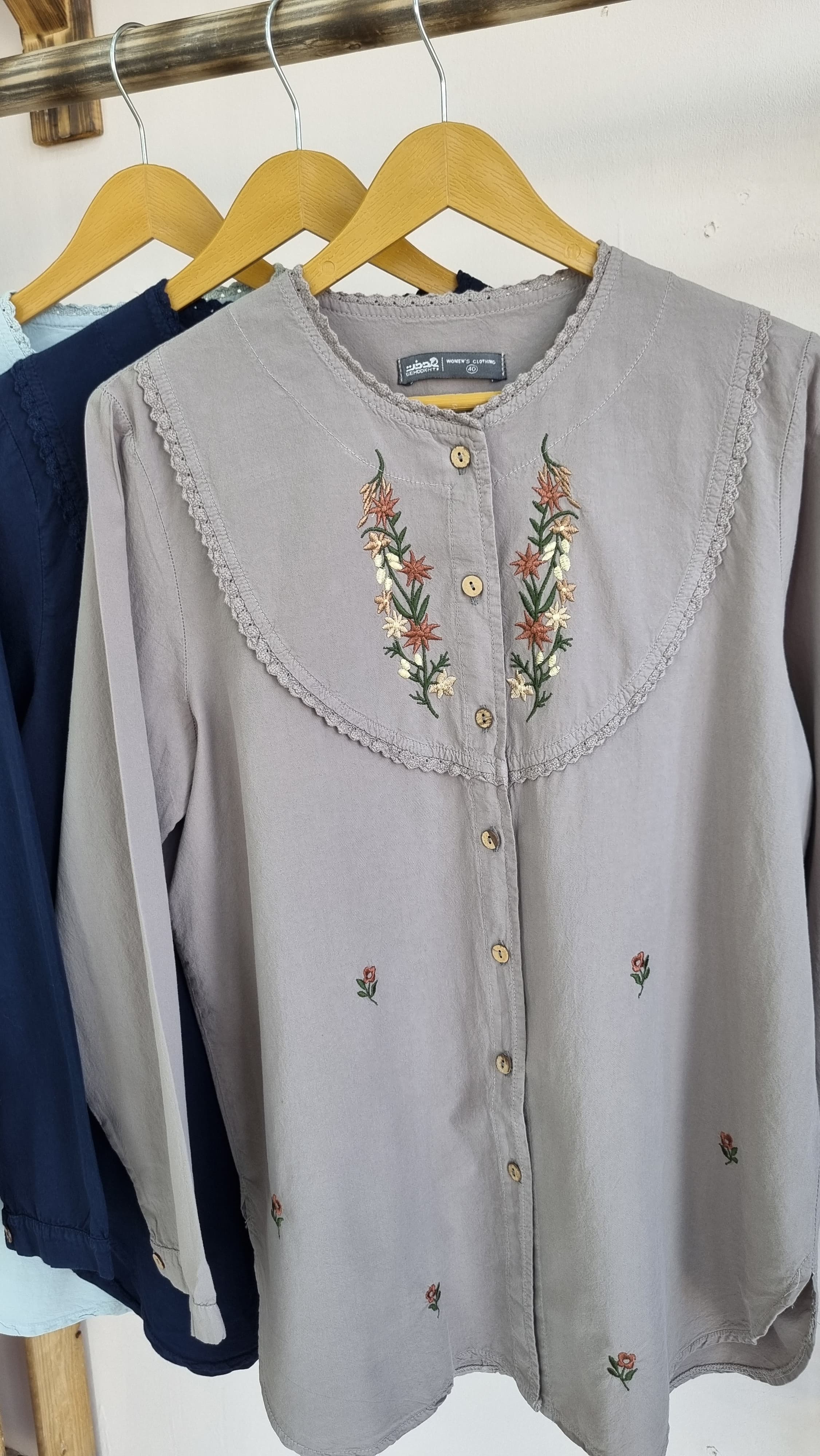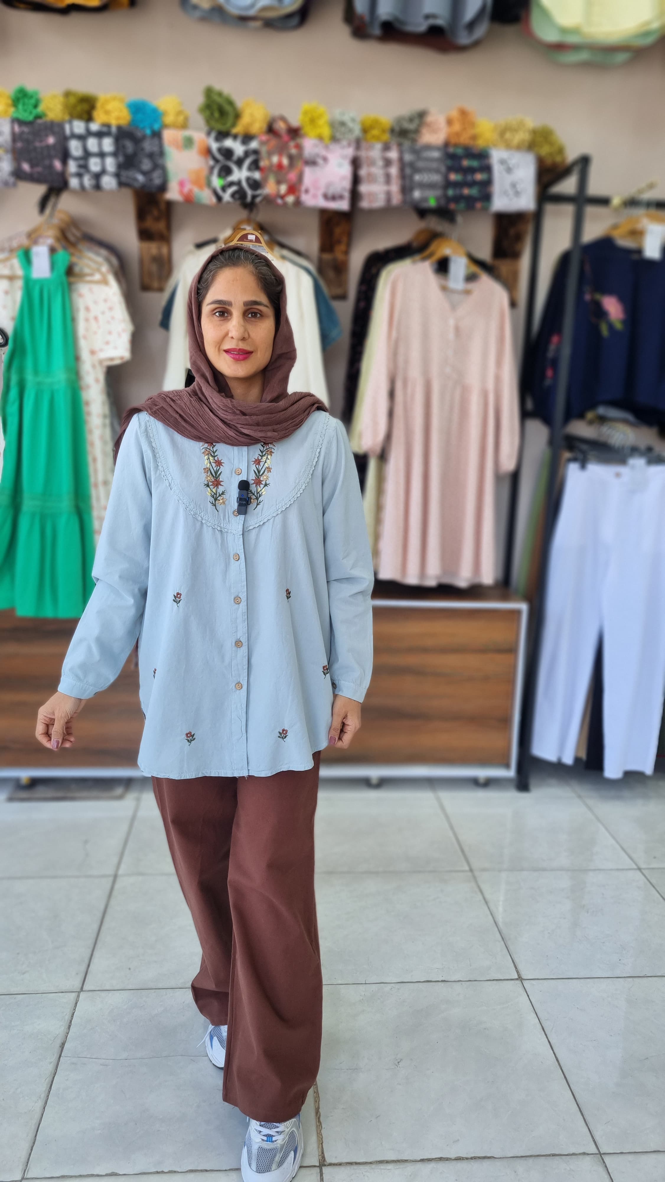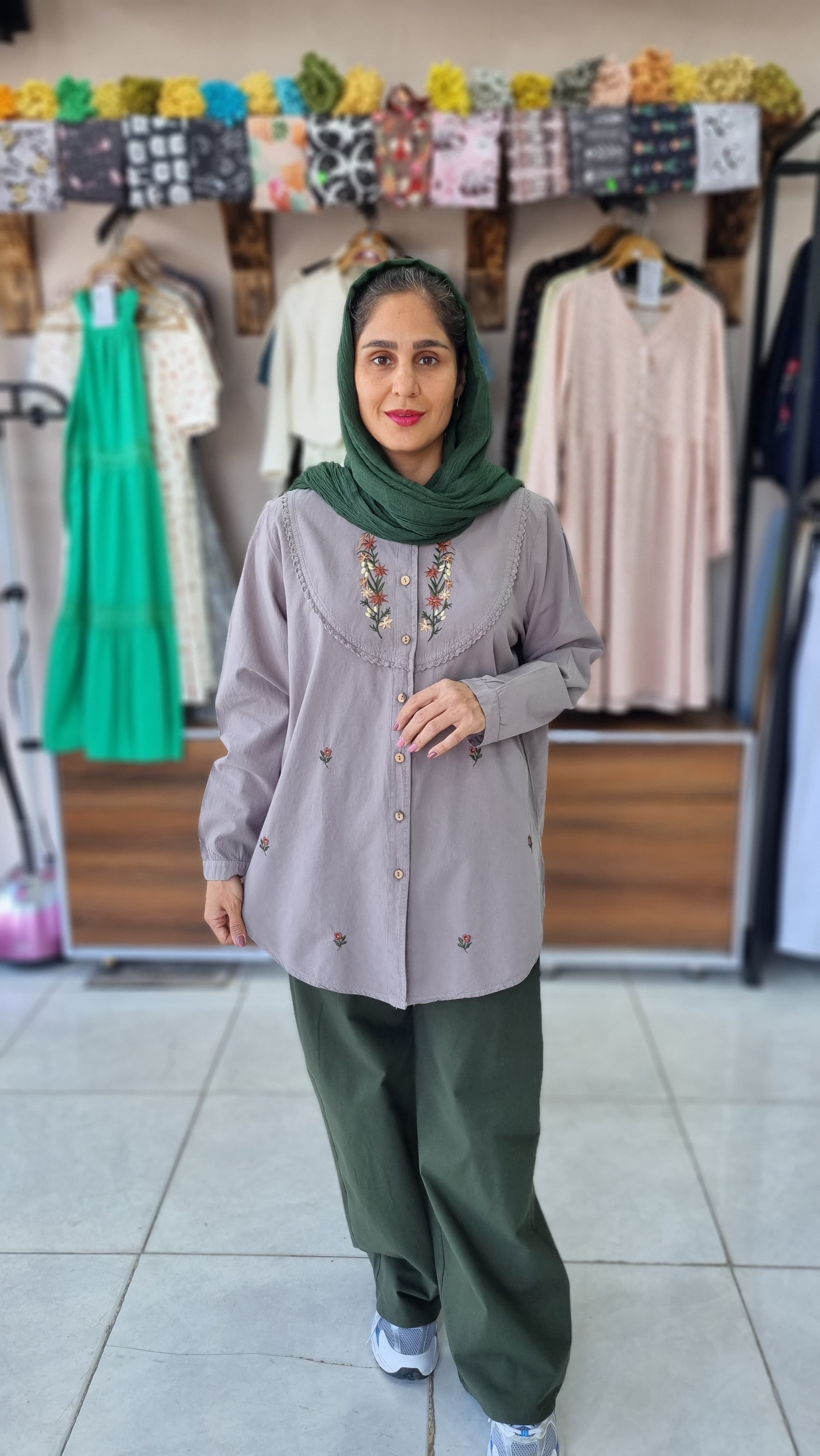 جنس الیاف طبیعی ، بدون آبرفت و رنگدهی ، دکمه خور ، یقه گرد و دانتل دوزی ، آستین مردانه ، جلو کار برش خورده و دانتل دوزی ، گلدوزی ظریف ، سایزبندی ۳۸ تا ۴۴ ، ولی قواره آزاد مناسب تا ۴۶ گاها ۴۸ ، حتما قبل از ثبت سفارش جدول سایزبندی رو چک کنید