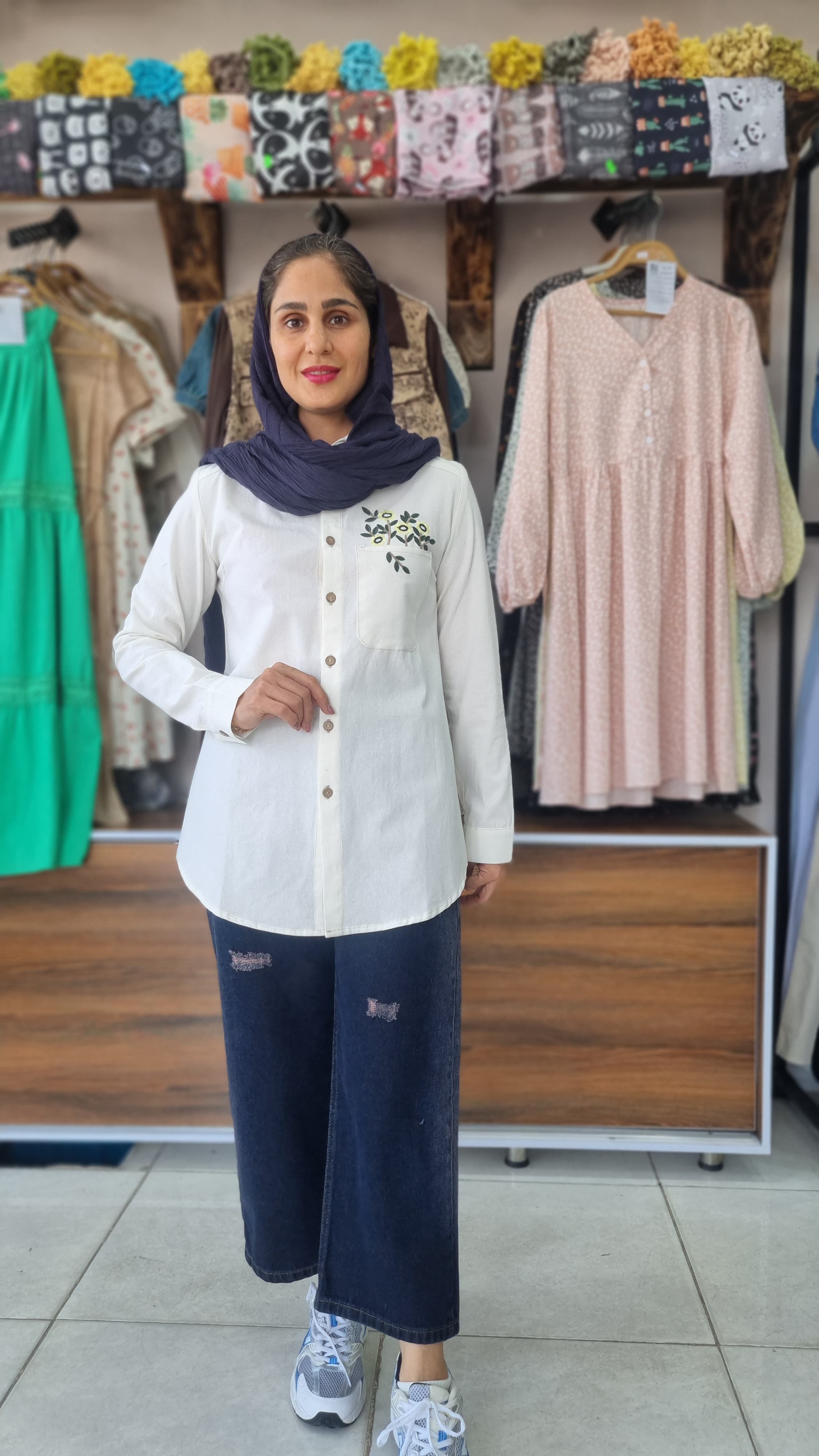 جنس الیاف طبیعی ۱۰۰ درصد پنبه ، بدون آبرفت و رنگ دهی، کپ اندامی ، دکمه خور، یقه مردانه ، آستین دکمه خور ، تک رنگ ، تک جیب جلو شومیز و گلدوزی شده، ۴ سایز ، مناسب ۳۶ تا ۴۴ ، حتما قبل از ثبت سفارش اندازه هارو چک کنید