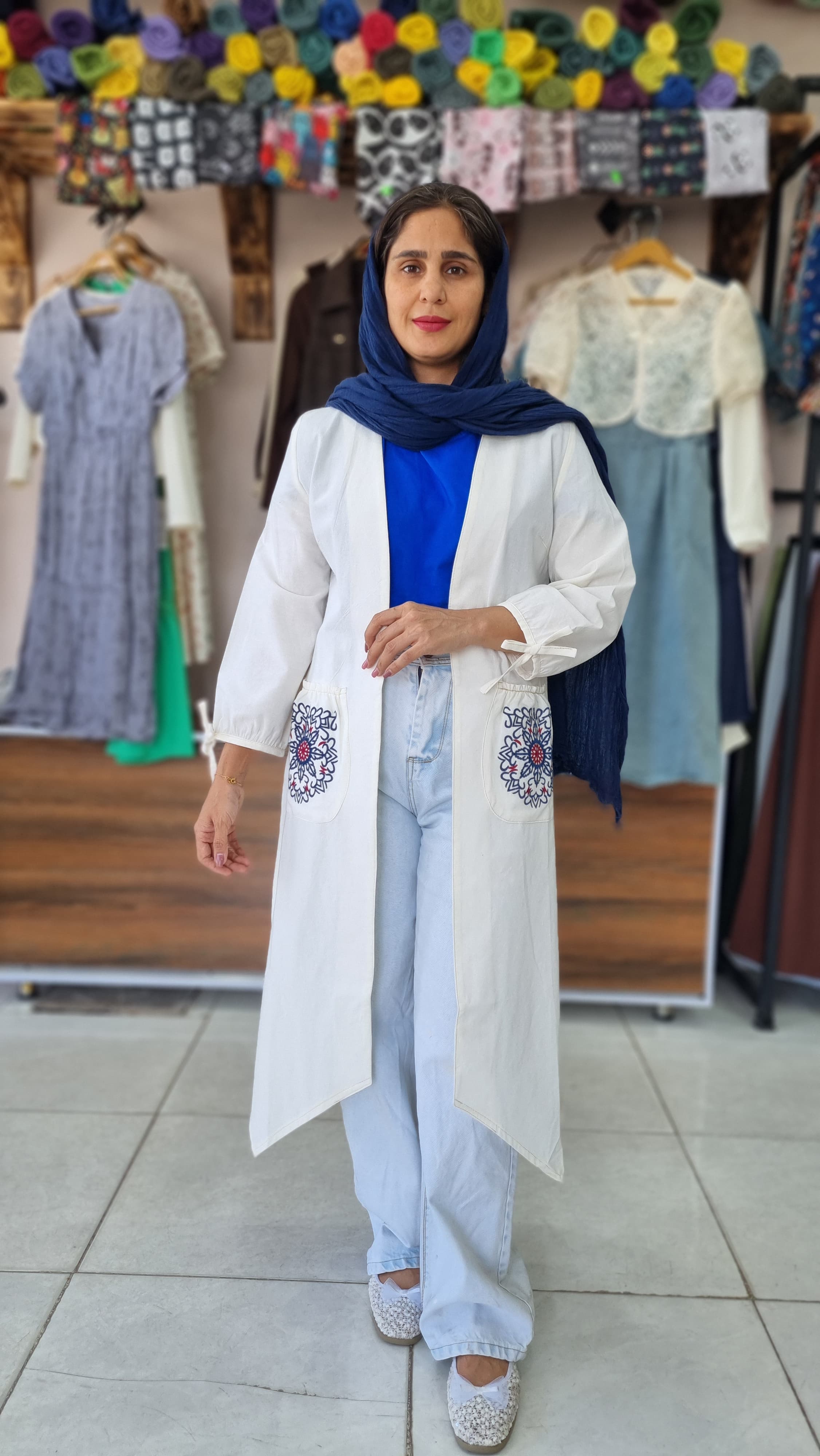 جنس الیاف طبیعی ۱۰۰ درصد پنبه ، تک رنگ ، گلدوزی شده ، پشت مانتو برش لوزی ، جلو باز ، ۴ سایز ، مناسب ۳۶ تا ۴۴ ، حتما قبل از ثبت سفارش جدول سایزبندی رو چک کنید