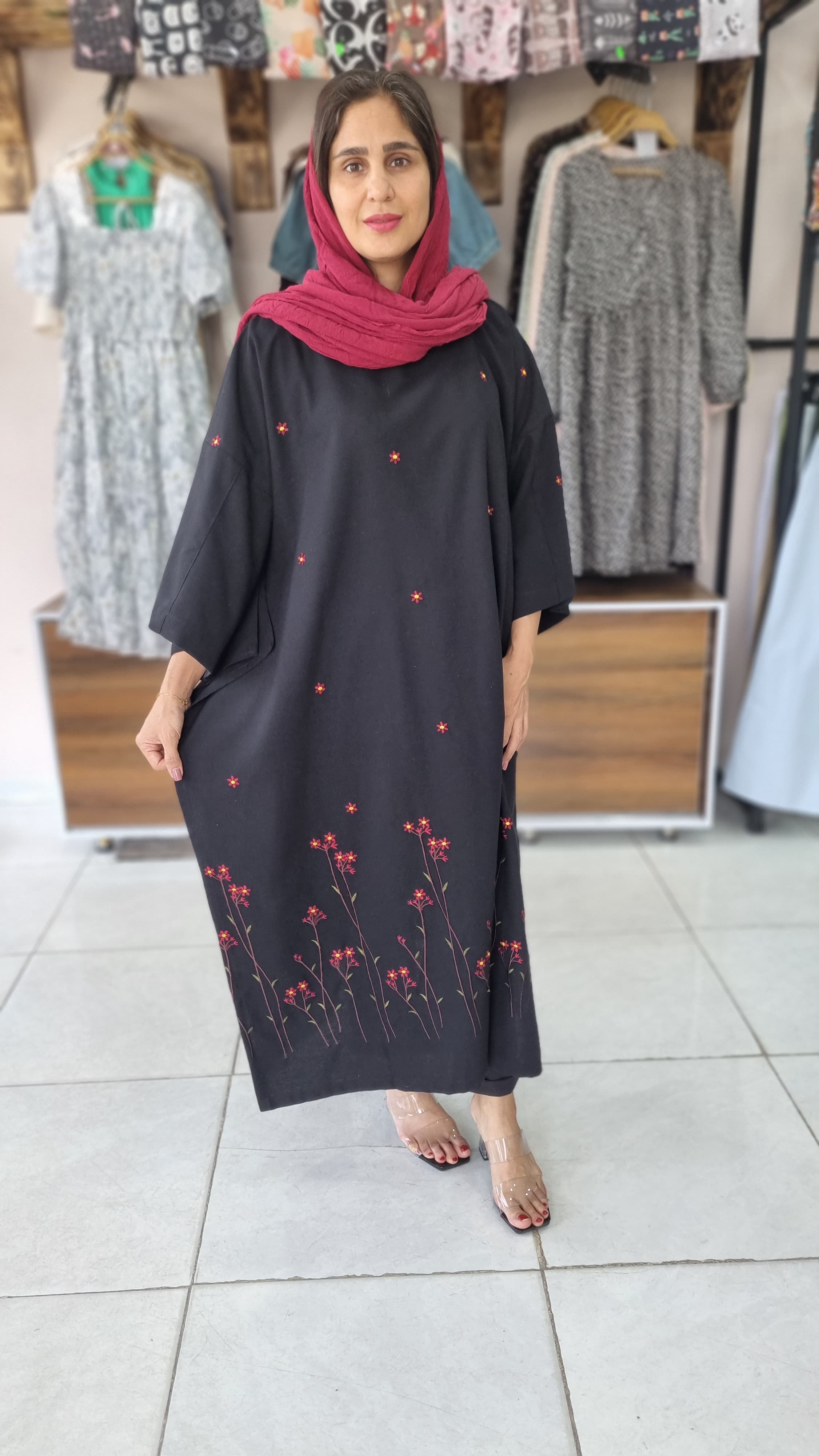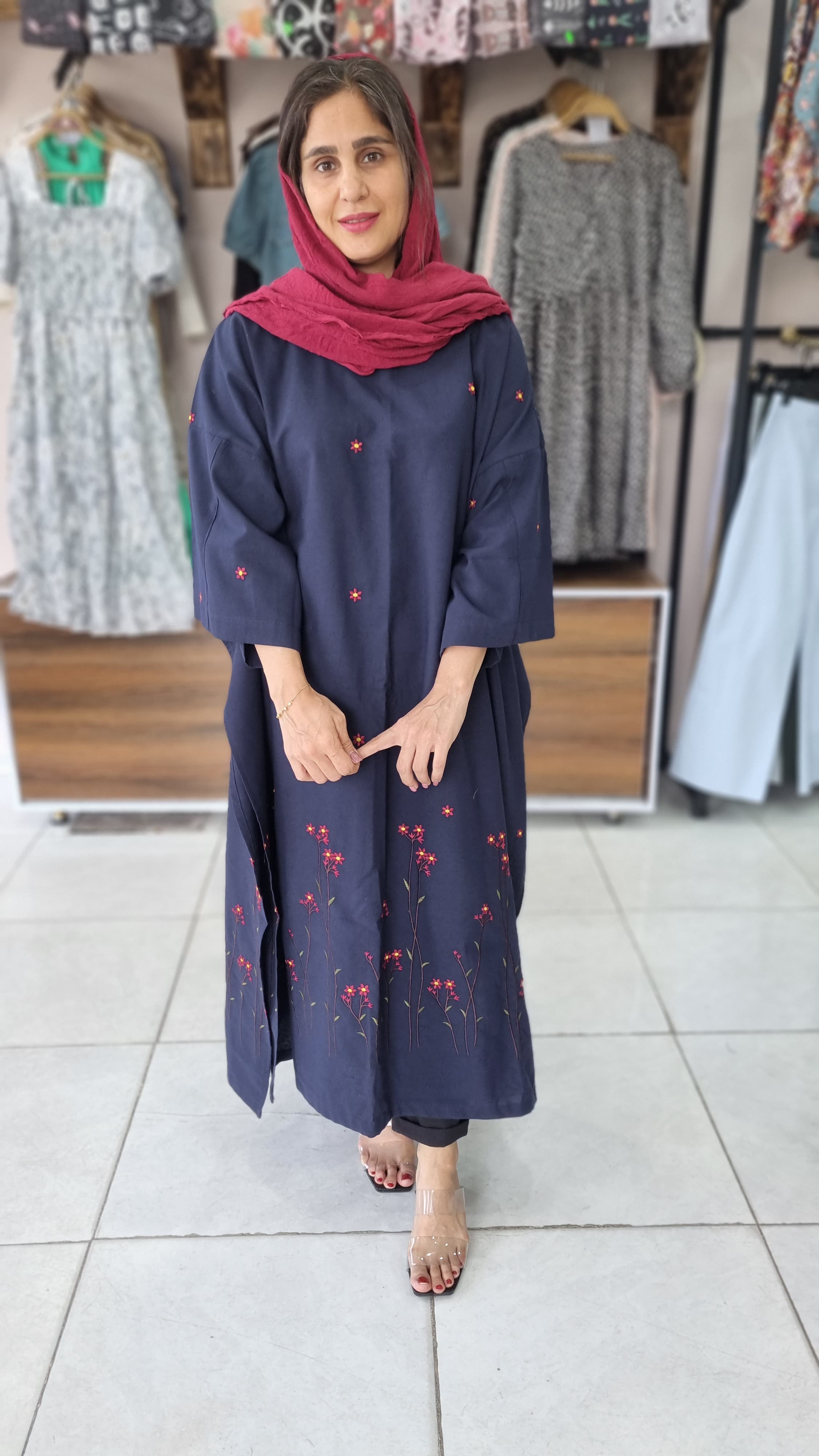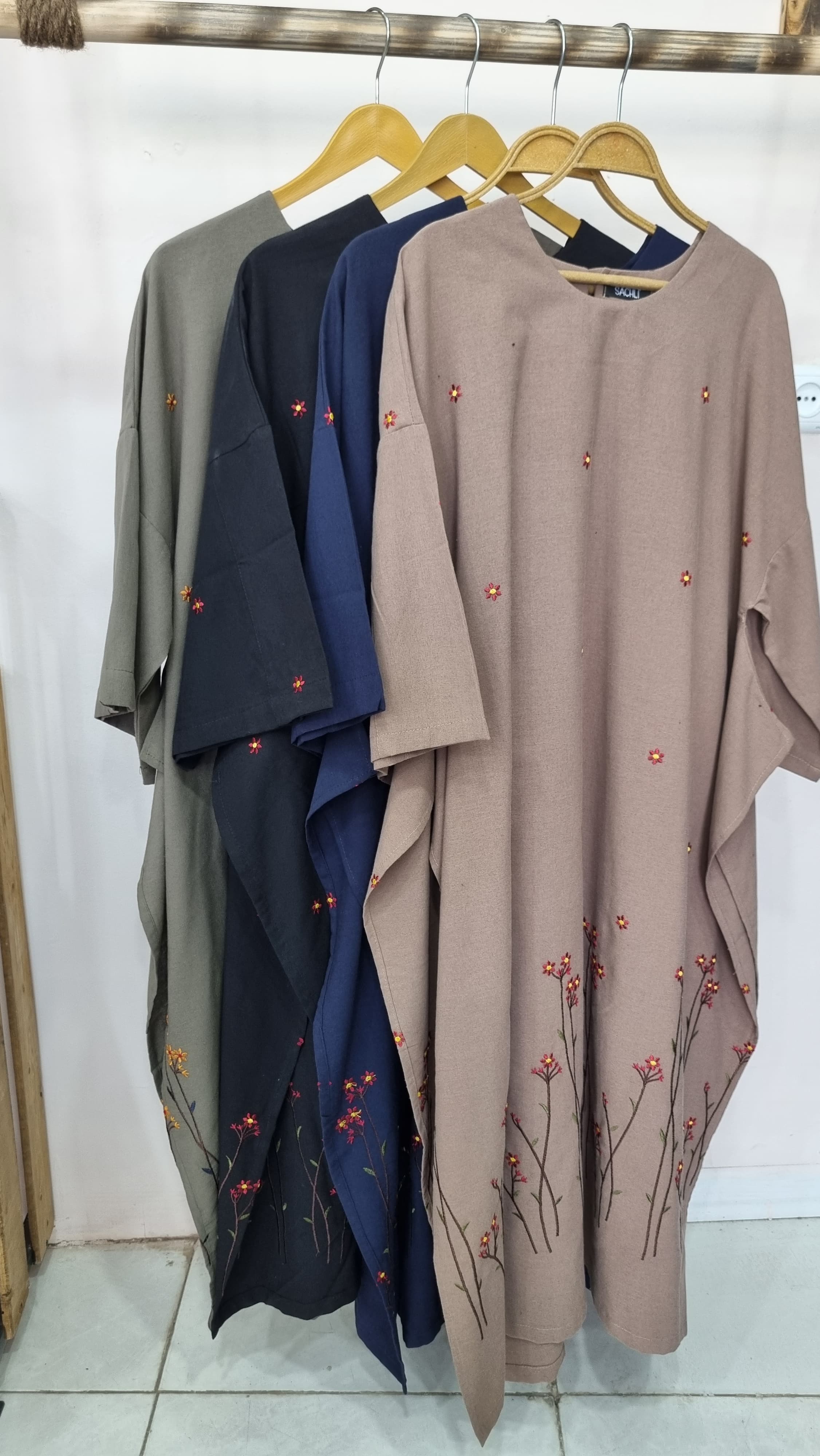 جنس لینن ، تماما گلدوزی شده ، قواره آزاد و بزرگ ، فری سایز ، مناسب تا ۵۴ ، حتما قبل از ثبت سفارش جدول سایز بندی رو چک کنید ، دو طرف پانچ باز هست ، موقع پوشیدن مراقب باشید به دلیل آزاد بودن زیر پاتون گیر نکنه و پاره نشه
