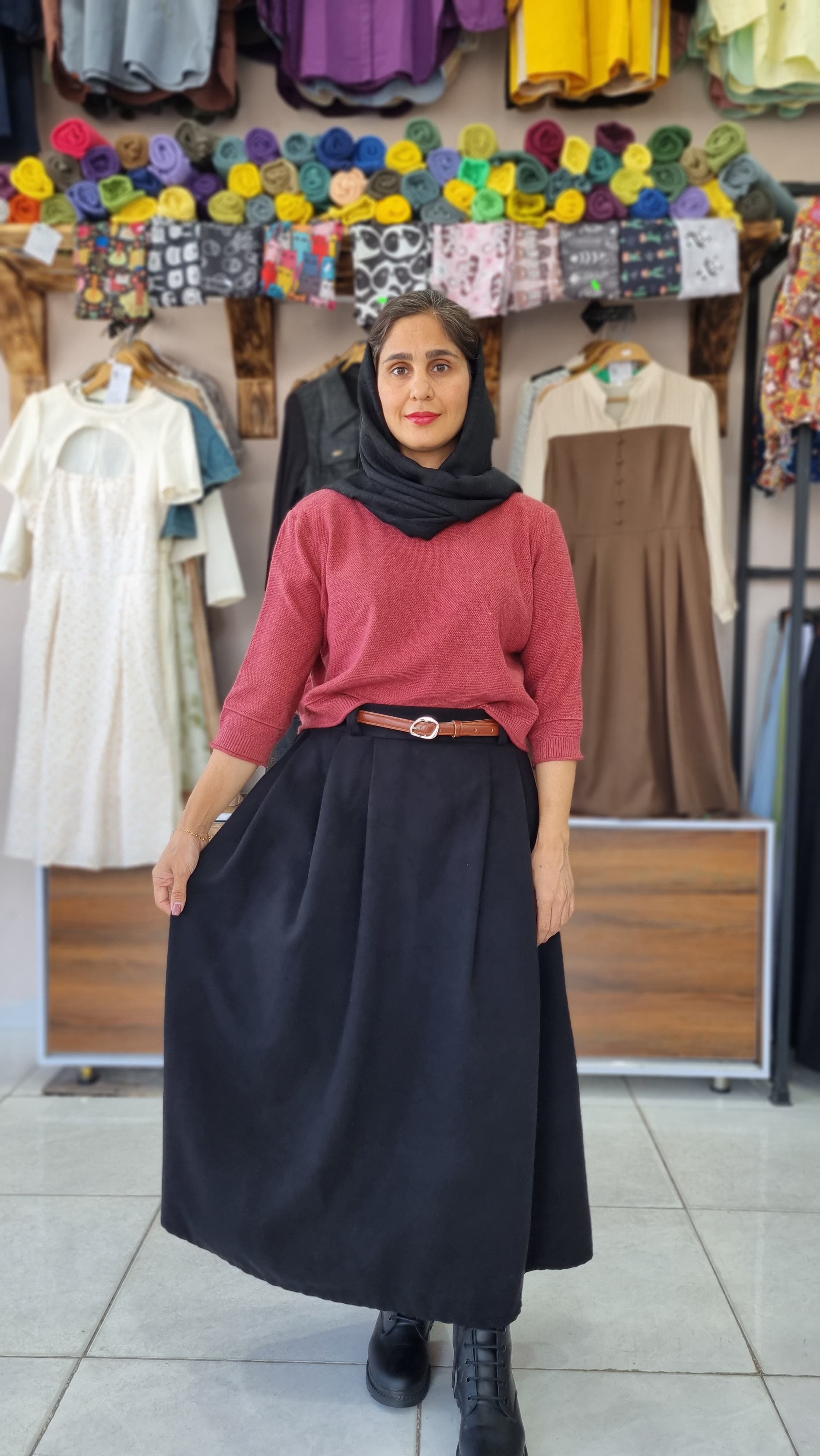 جنس فوتر کوبیده ، جلو دامن پیله دار کمری و جا کمربند ، پشت دامن کش ، فری سایز مناسب تا ۴۴ ، حتما قبل از ثبت سفارش اندازه هارو چک کنید
