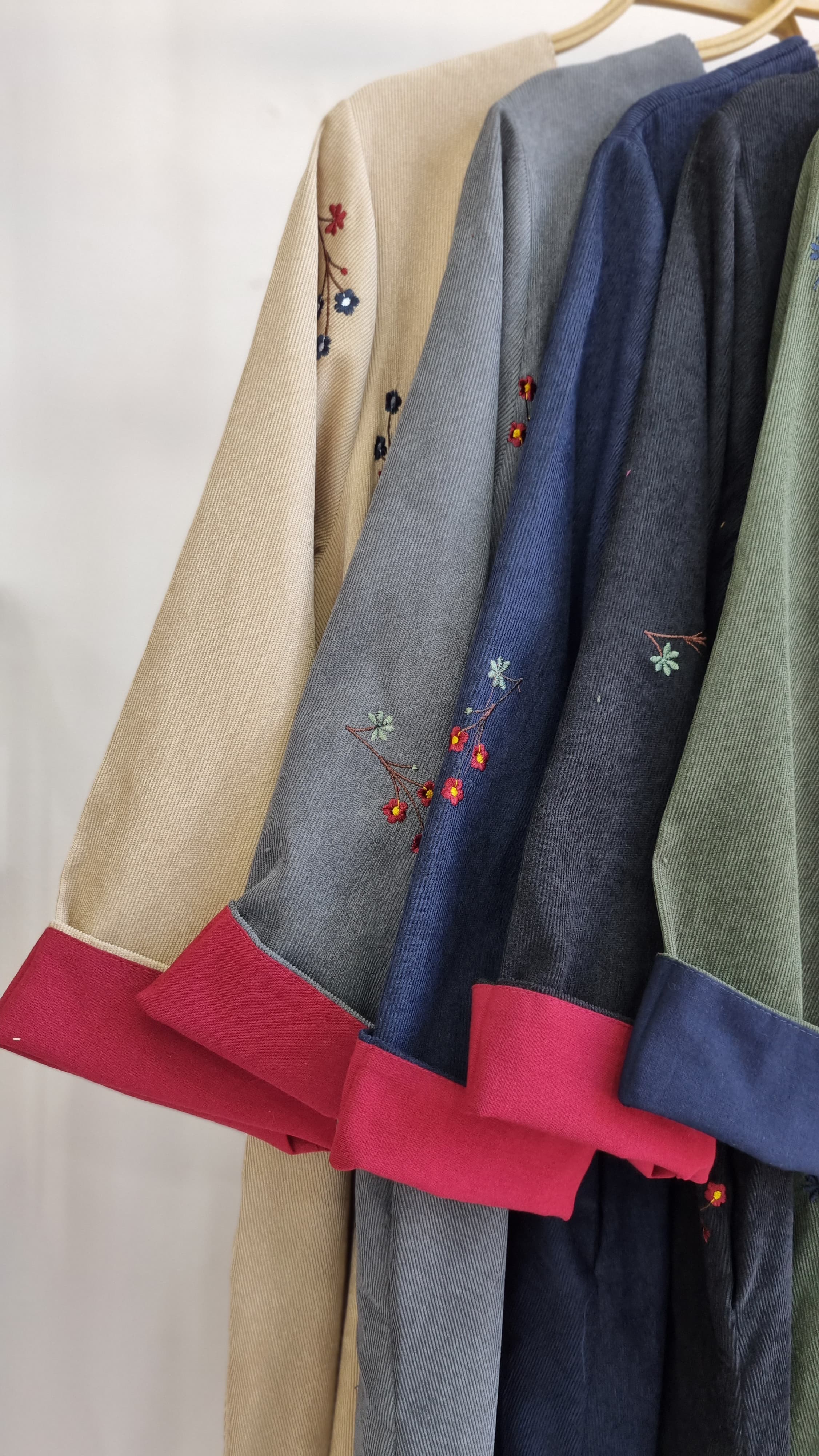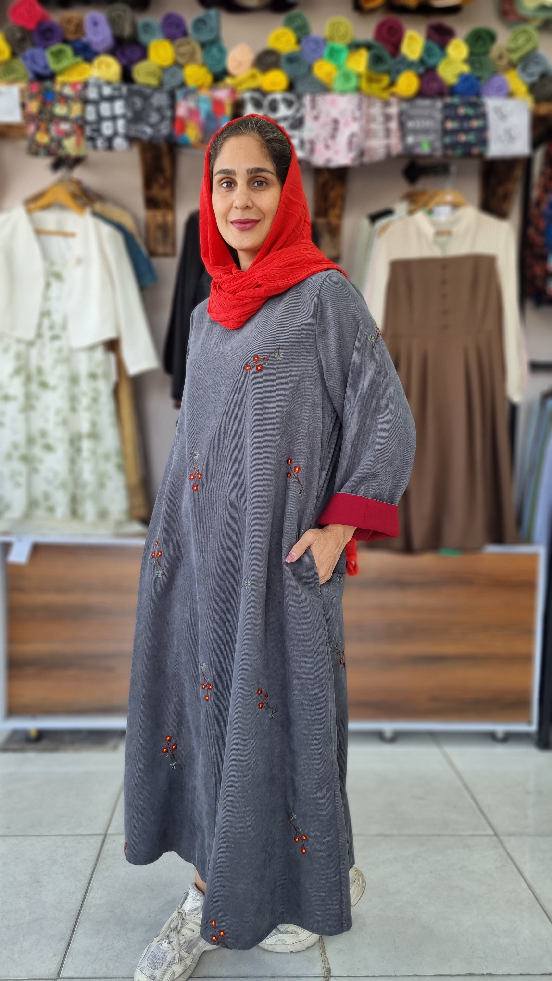 جنس مخمل کبریتی ریز ، تماما گلدوزی شده ، جیب داره ، از زیر بغل فون میشه و به صورت کلوش هست ، آستین تیکه دوزی شده و به صورت پاکتی برمیگرده ، دو سایز داره و به راحتی تا ۴۸ گاها ۵۰ مناسبه ، حتما قبل از ثبت سفارش جدول سایزبندی رو چک کنید