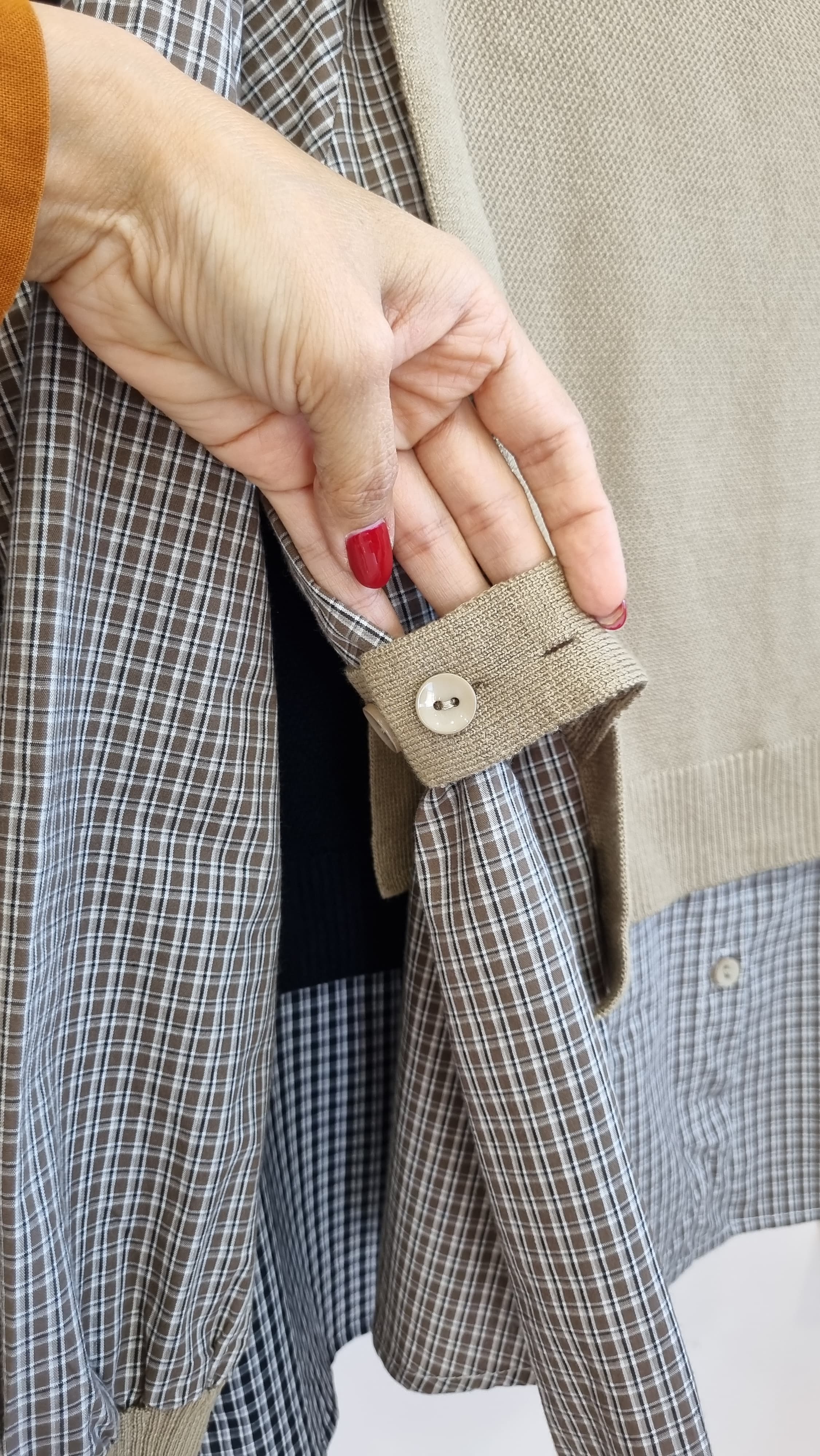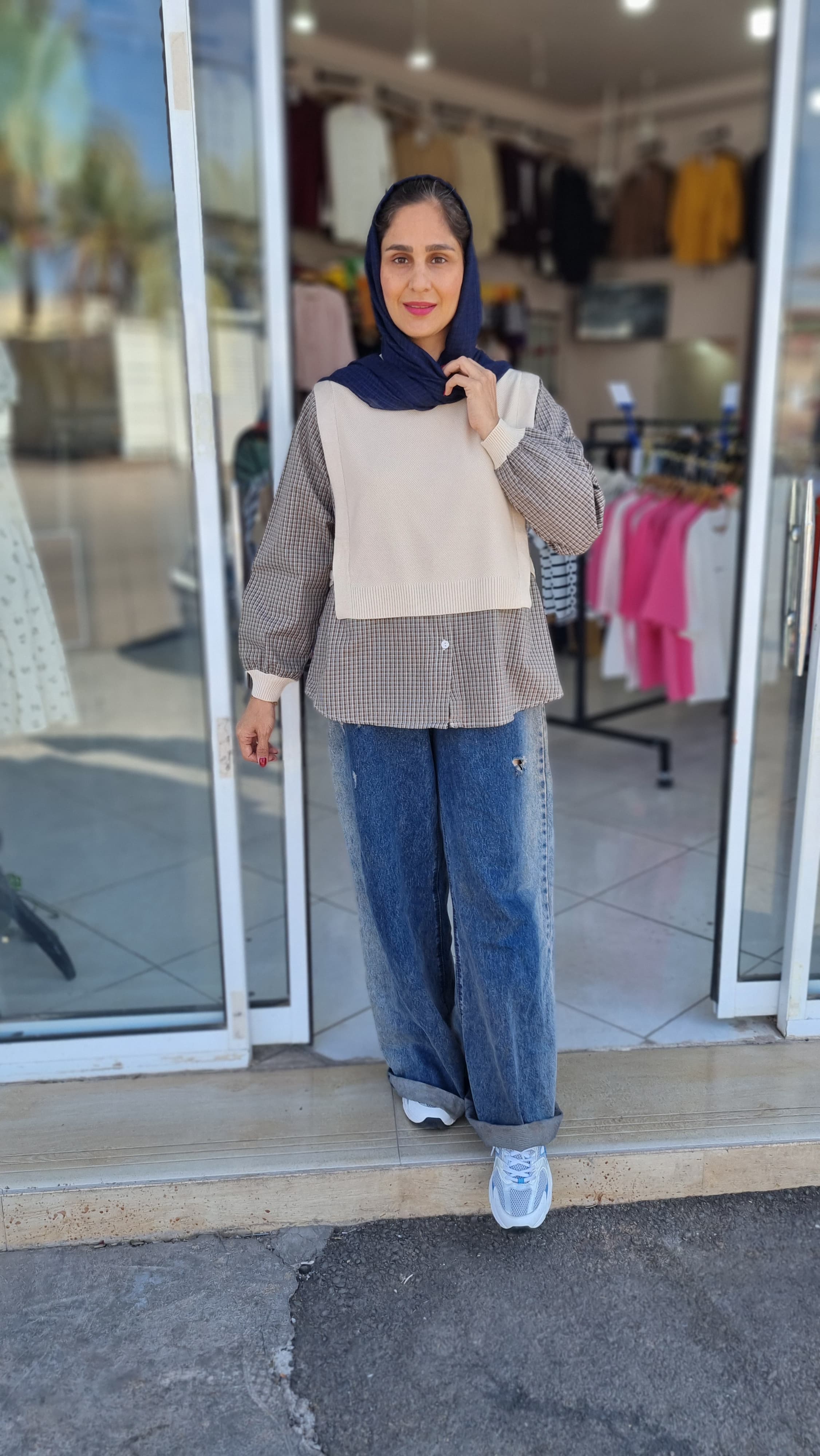 بلوز چهارخونه ترکیبی بافت بافت ظریف ، وست و آستین ها از جنس بافت ظریف ، پارچه چهارخونه از جنس لینن ، کار وارداتی ، وست از پهلو ها دکمه داره و قابل تنظیم، فری سایز و تا ۴۶ مناسبه ، دکمه آخر بلوز باز میشه ، حتما قبل از ثبت سفارش جدول سایزبندی رو چک کنید