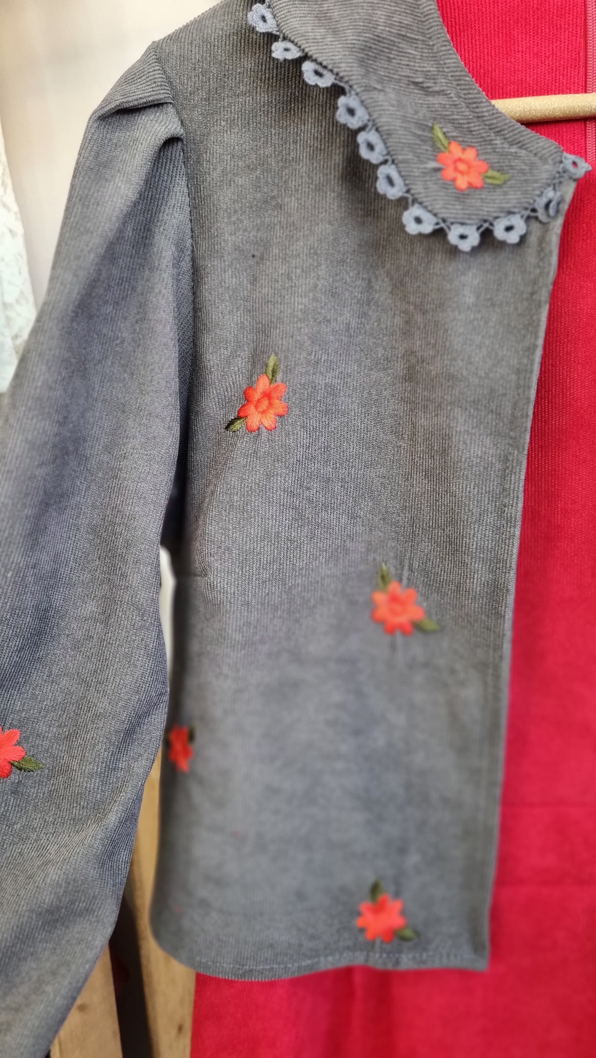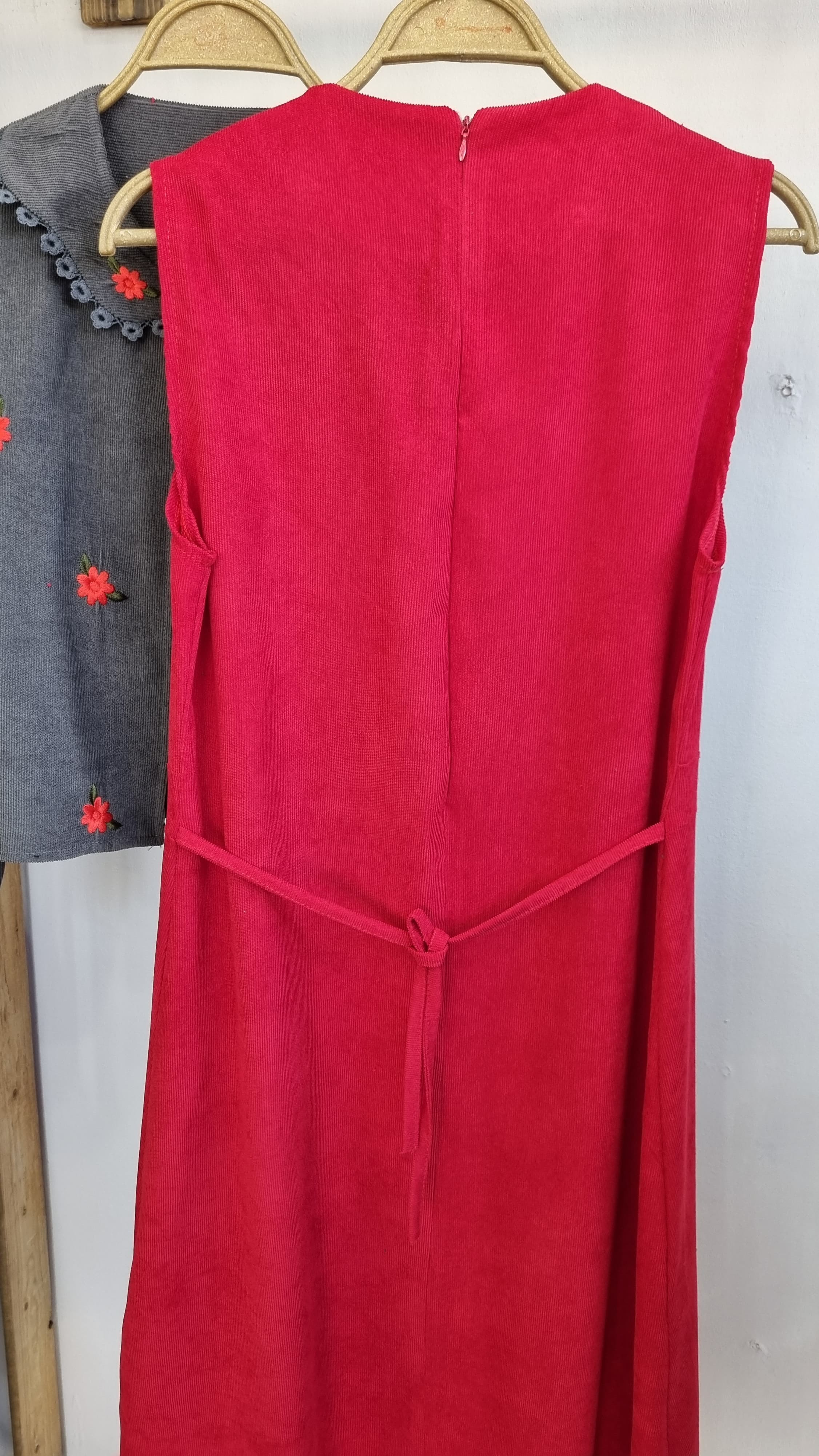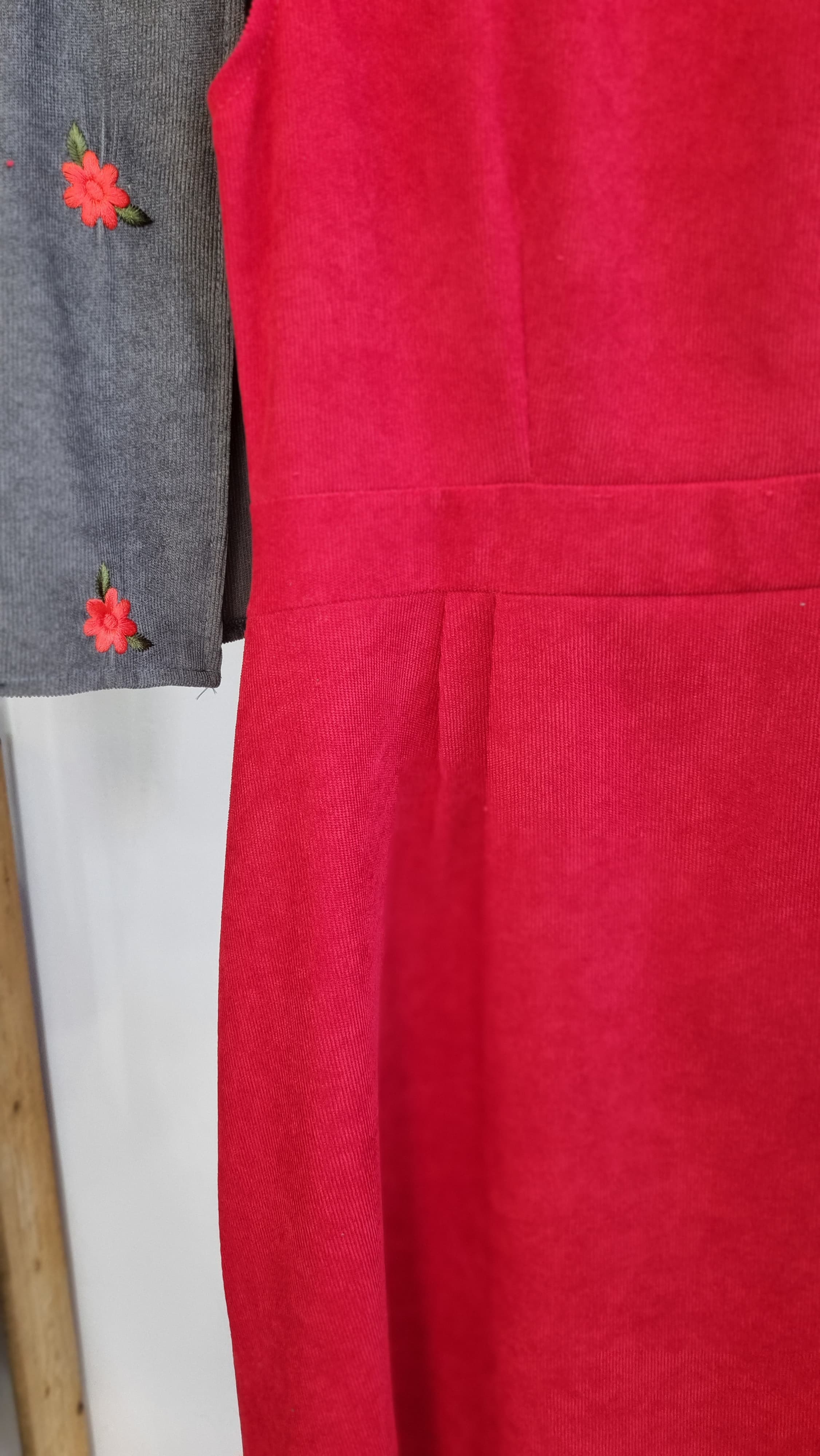جنس مخمل کبریتی ریز ، جلو سارافون کمری و پیله ، پشت سارافون زیپ مخفی و بندینک ، کت تماما گلدوزی شده ، یقه به به ، آستین عروسکی و دکمه خور ، دو سایز ، مناسب ۳۸ تا ۴۶ ، حتما قبل از ثبت سفارش جدول سایزبندی چک شود