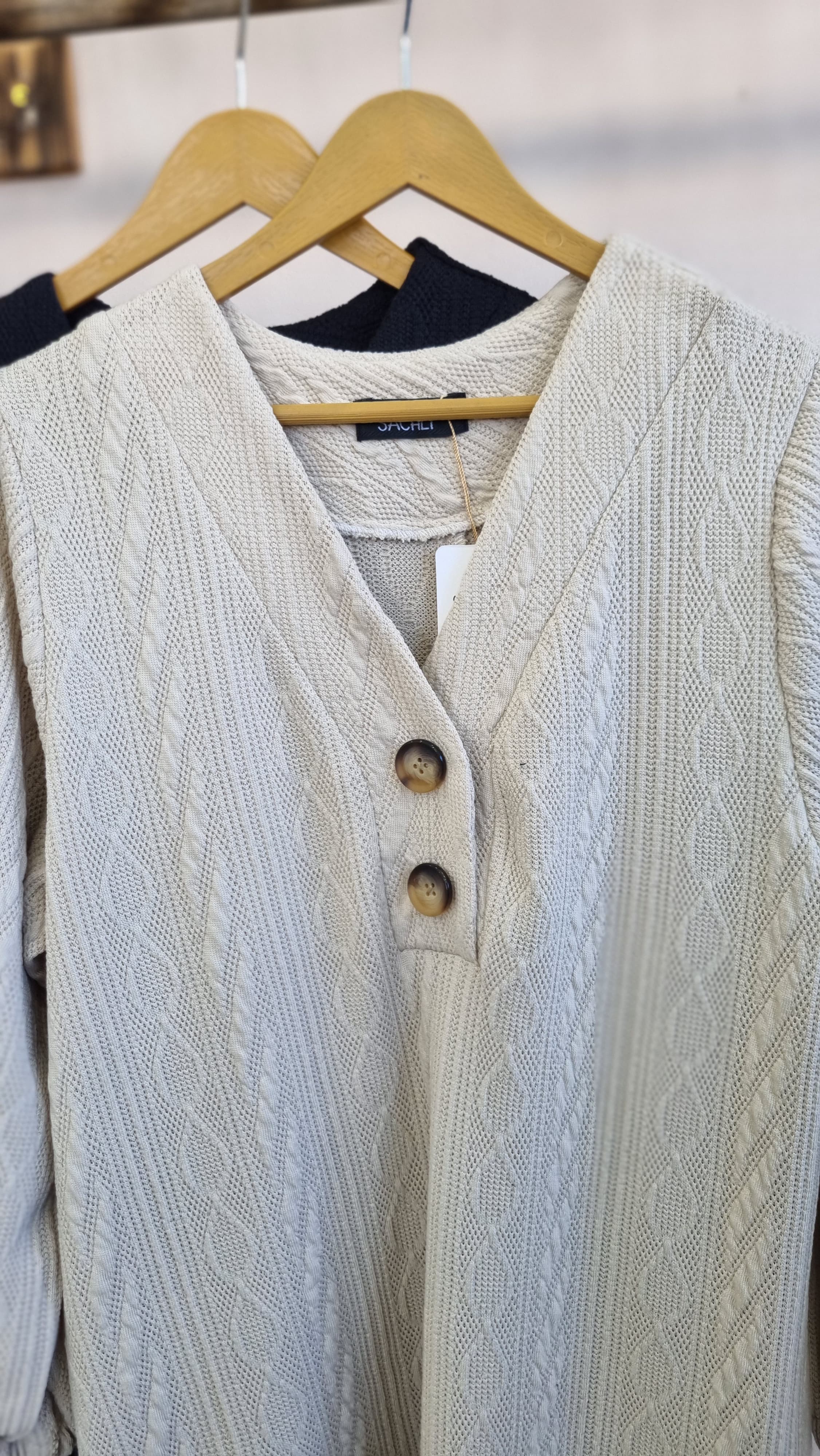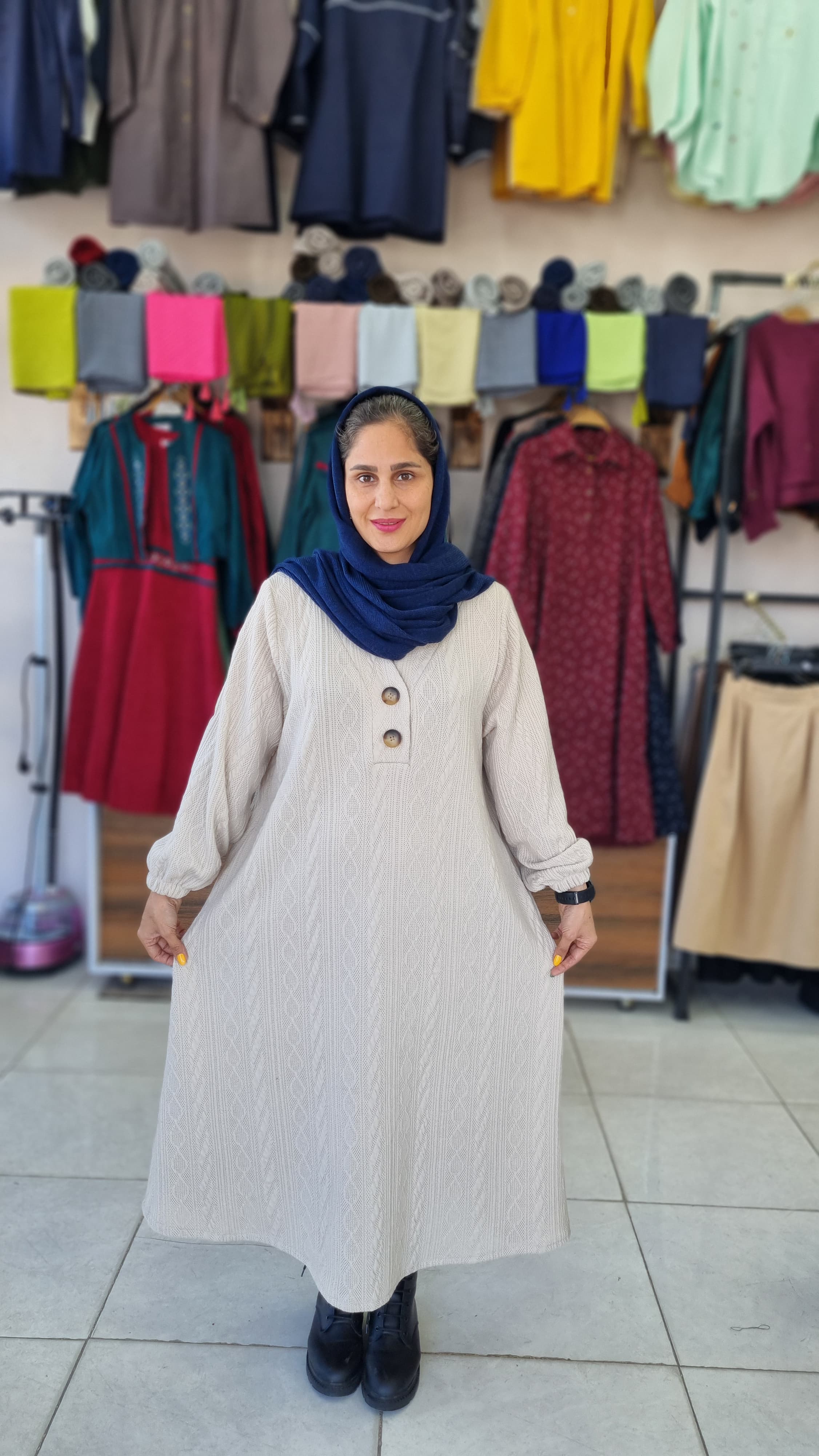 جنس بافت ، نرم و لطیف و گرم ، فری سایط تا ۴۶ گاها ۴۸ ، آستین کش دوزی ، یقه هفت و دوتا دکمه ، از زیر بغل فون و کلوش ، حتما قبل از ثبت سفارش اندازه هت رو چک کنید