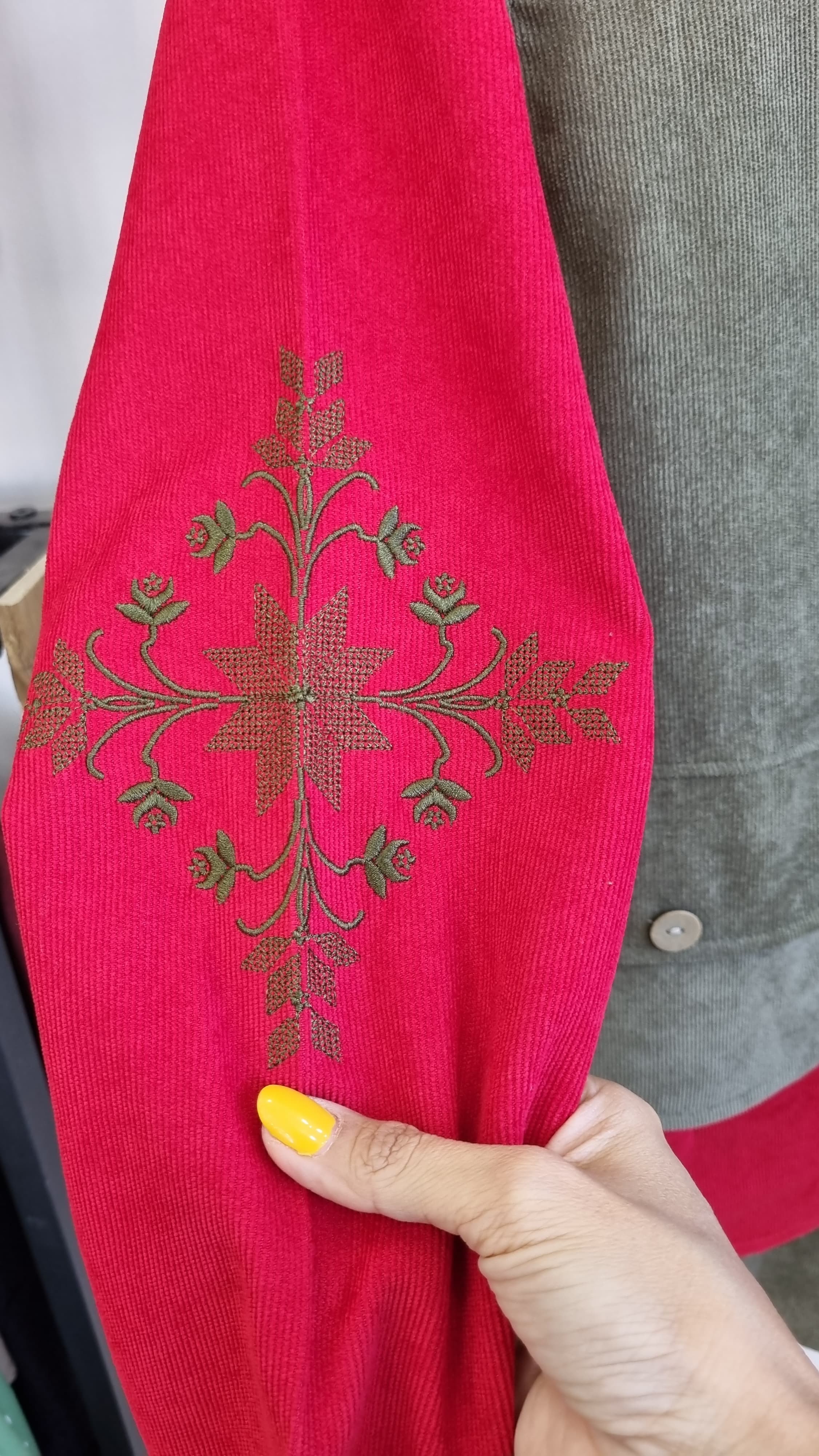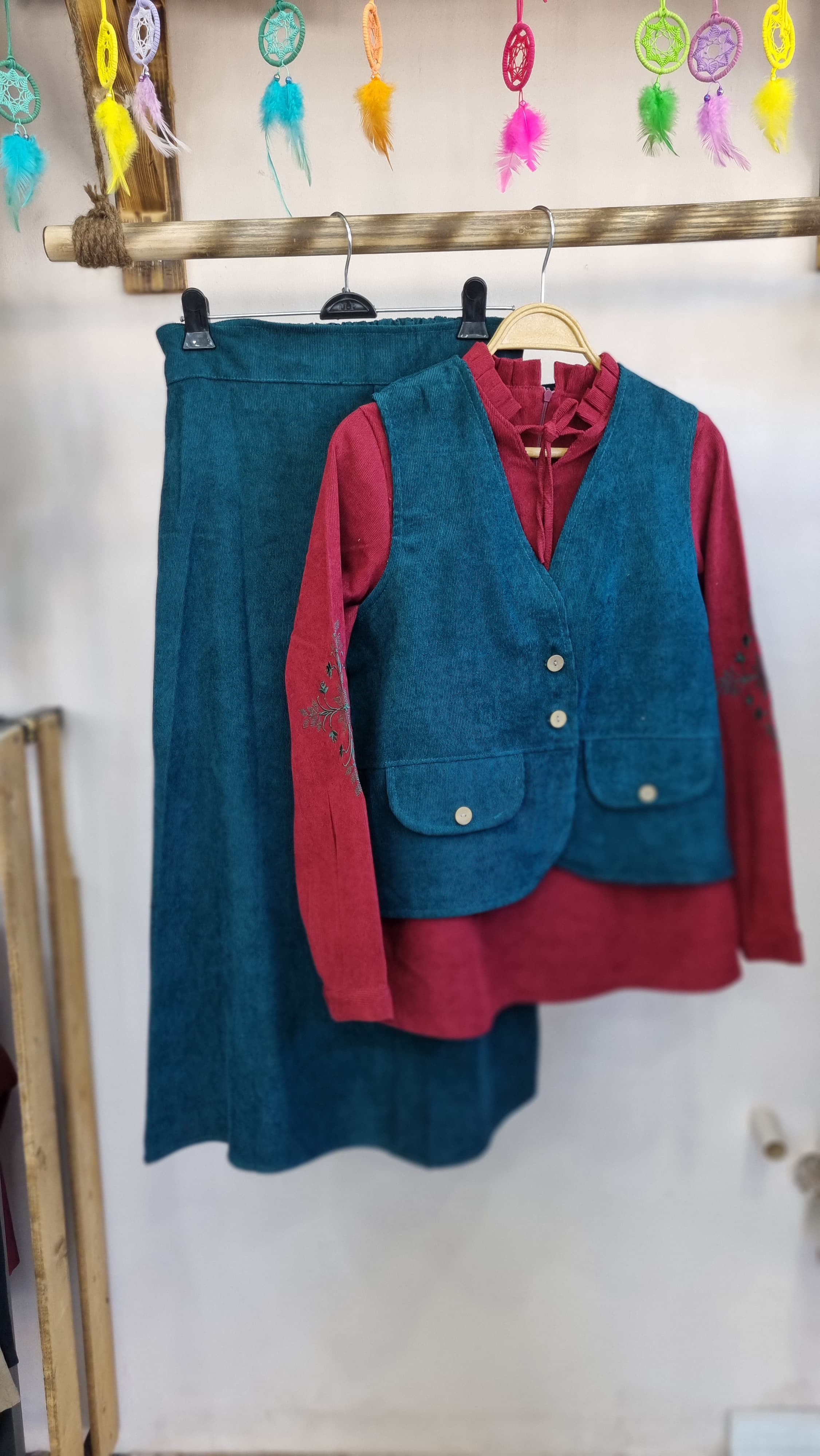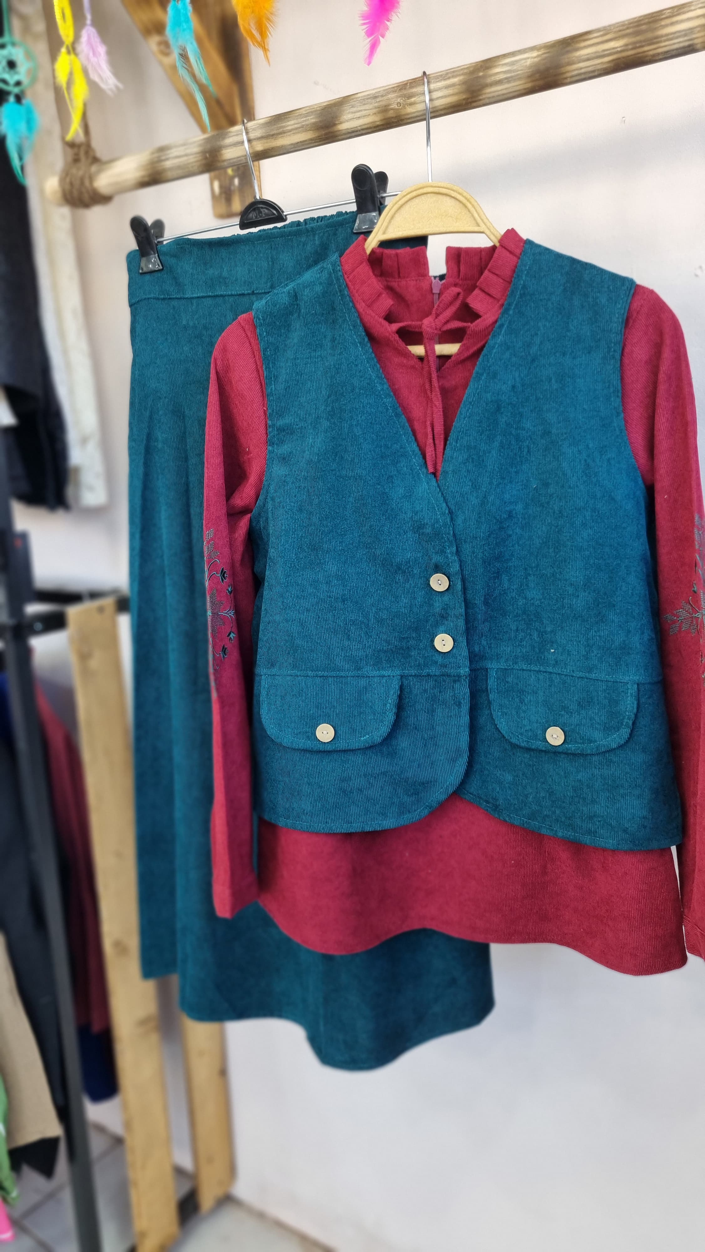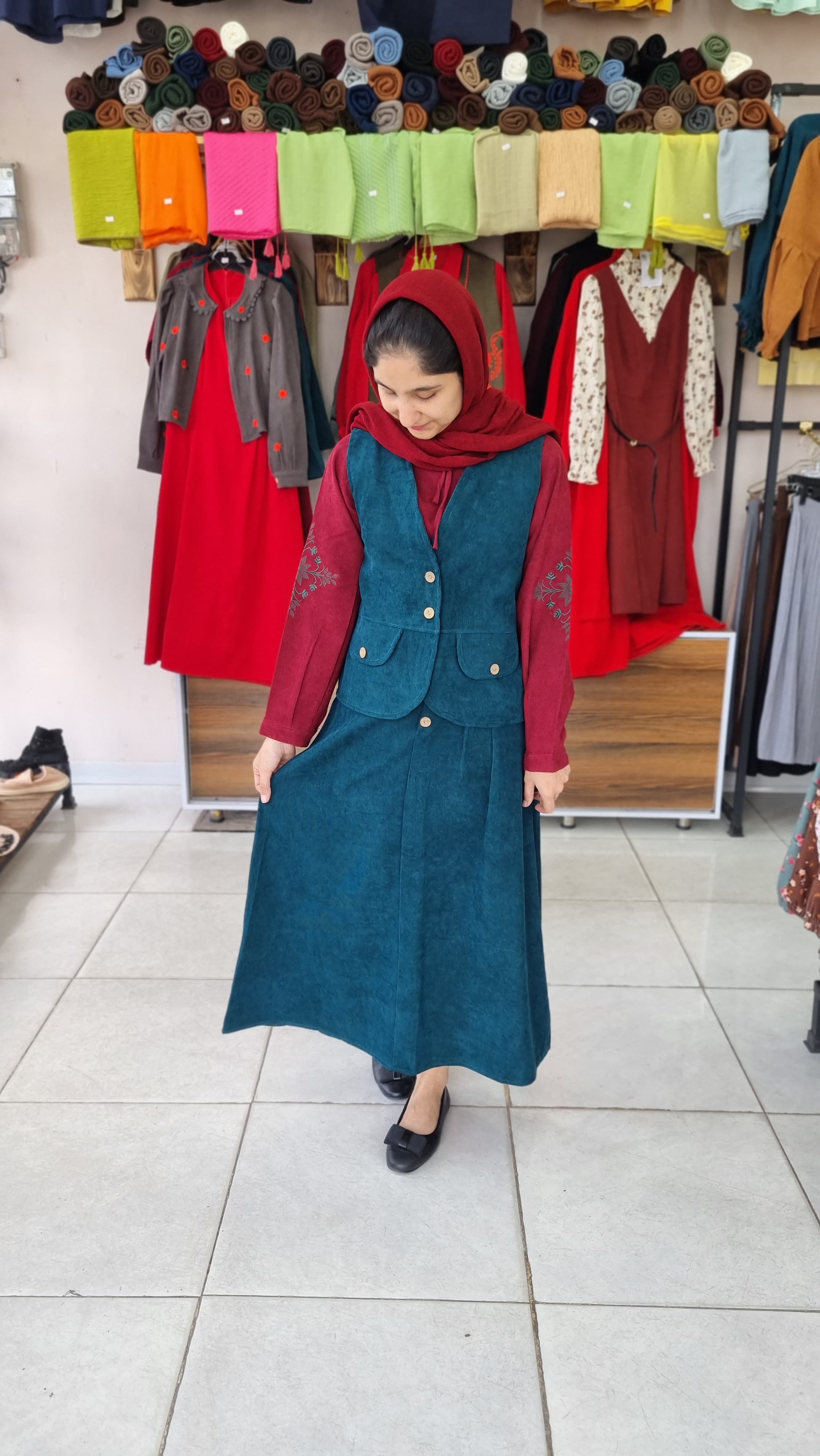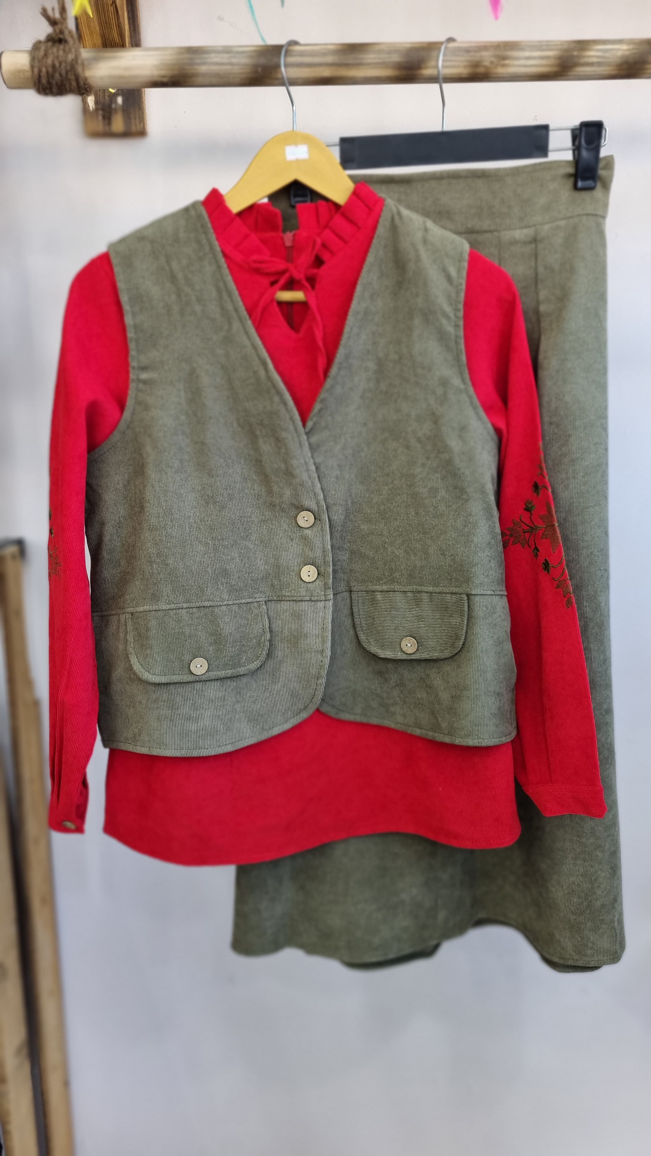 جنس مخمل کبریتی ،جلو دامن کمری و دکمه نما، پشت دامن کش دوزی ، پشت شومیز زیپ مخفی آستین گلدوزی شده و آستین ها دکمه خور ، جلیقه دکمه خکر و جیب نما ، دو سایز مناسب ۳۶ تا ۴۶ ، حتما قبل از ثبت سفارش اندازه ها رو از جدول سایزبندی چک کنید