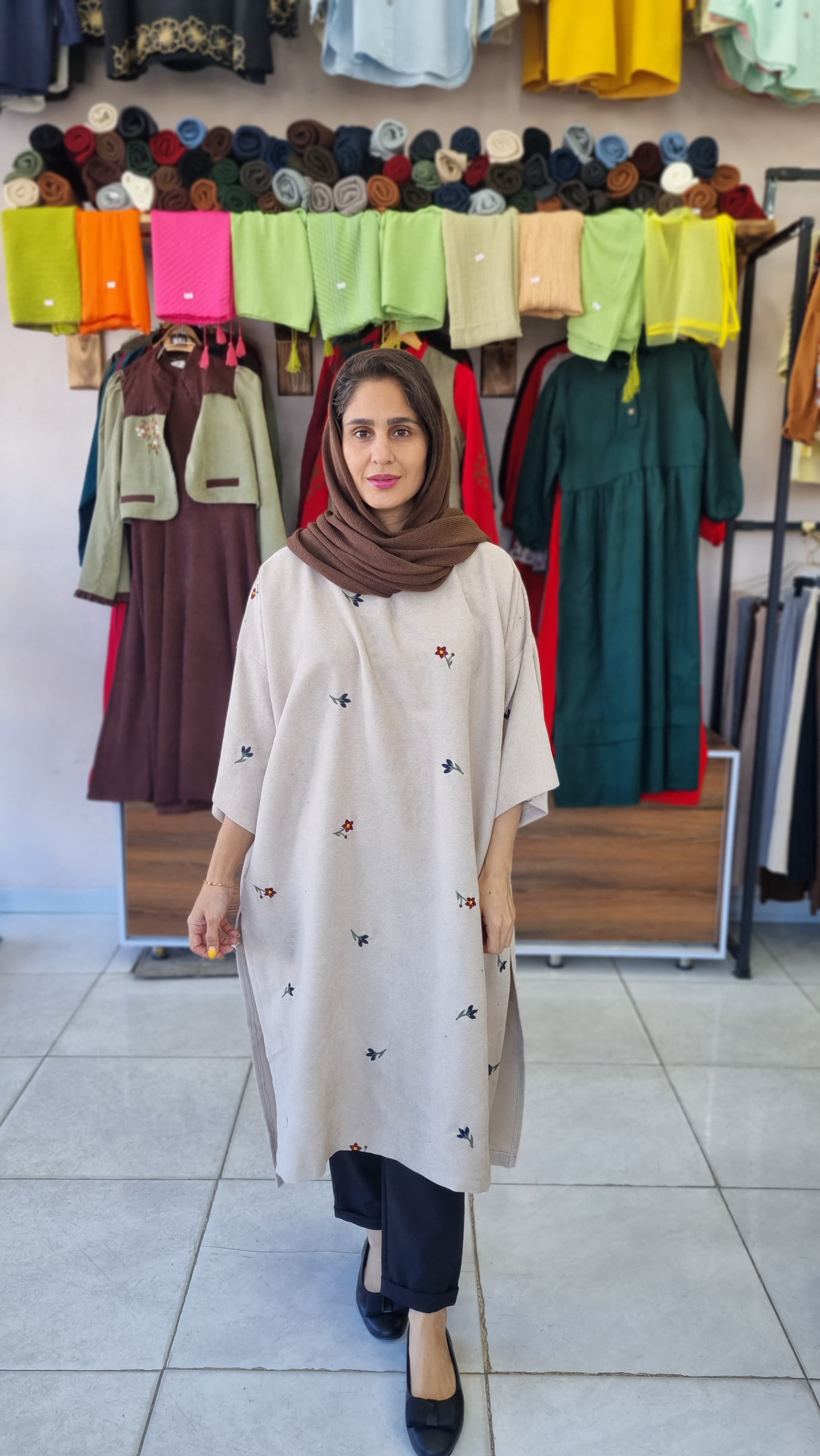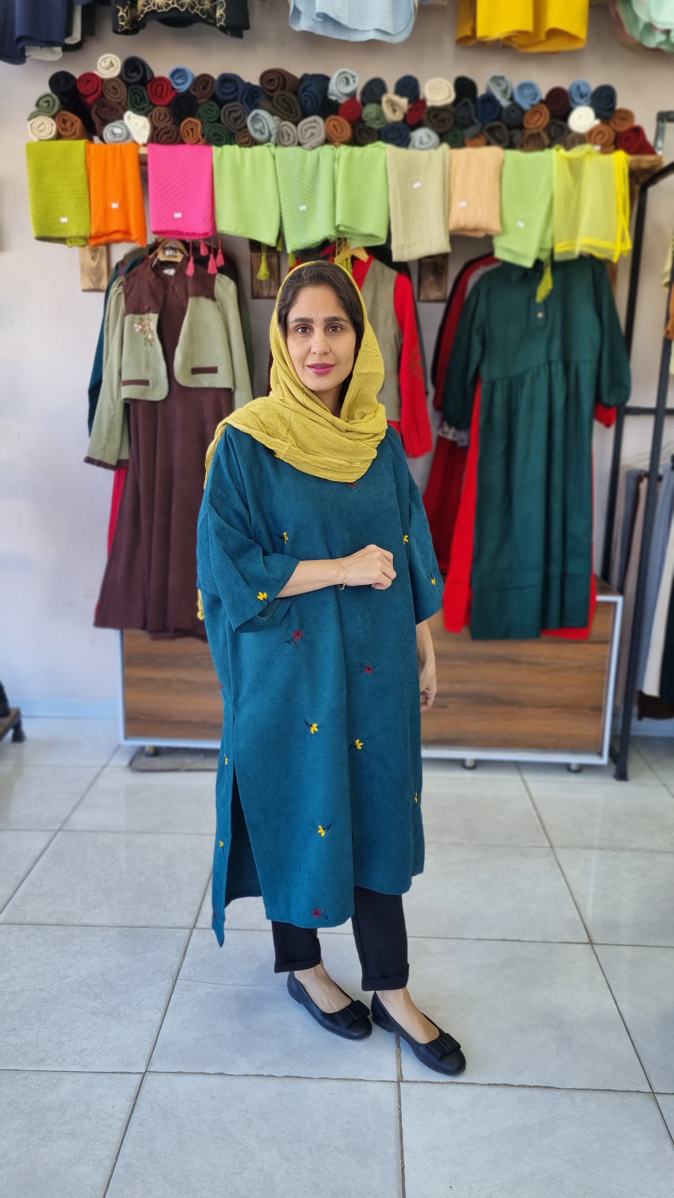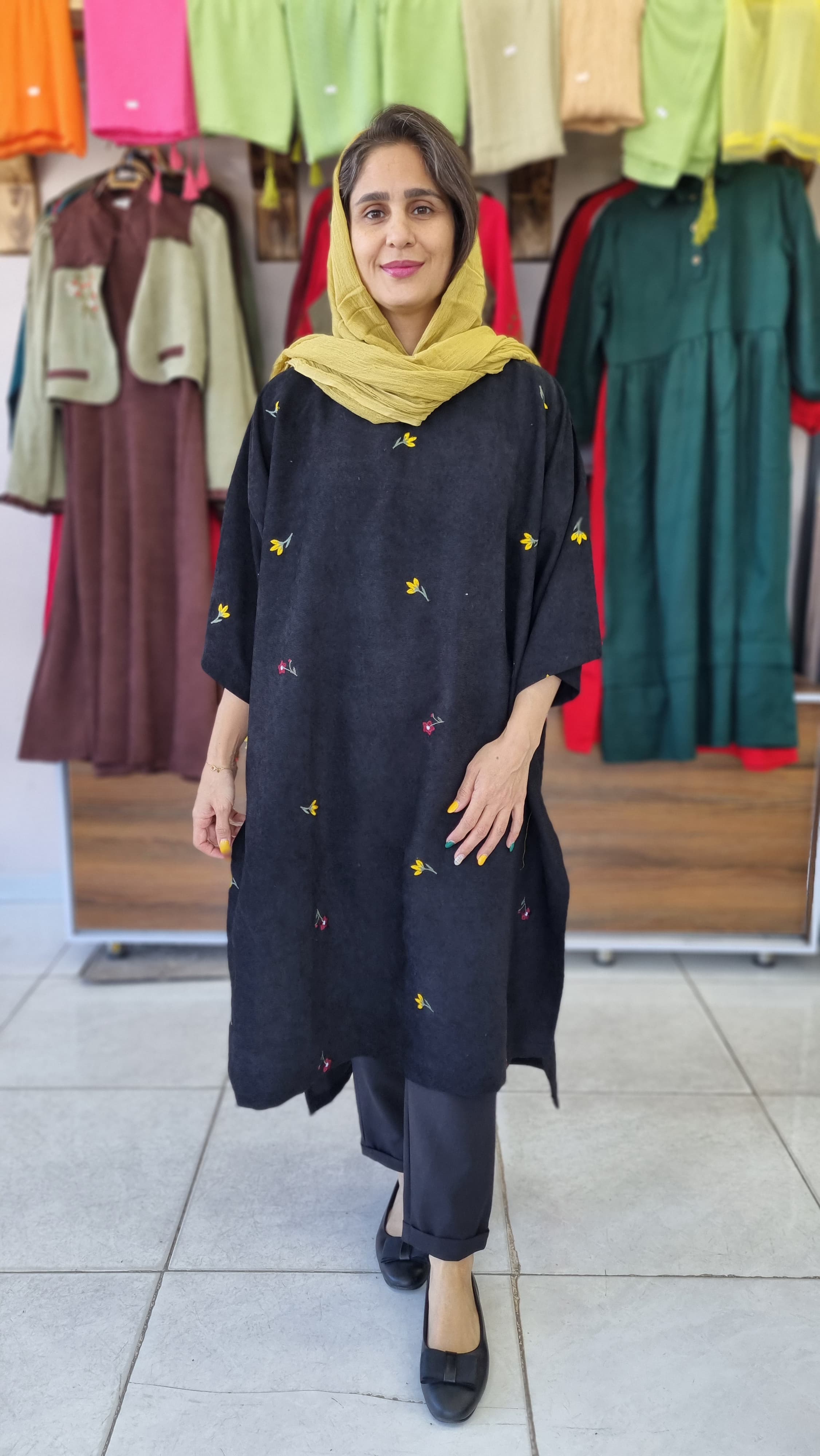 جنس مخمل کبریتی ، تمام گلدوزی شده ، پشت بلندتر از جلو ، دو طرف چاک ، آستین کیمونو ، فری تا ۴۸ ، حتما قبل از ثبت سفارش اندازه رو چک کنید