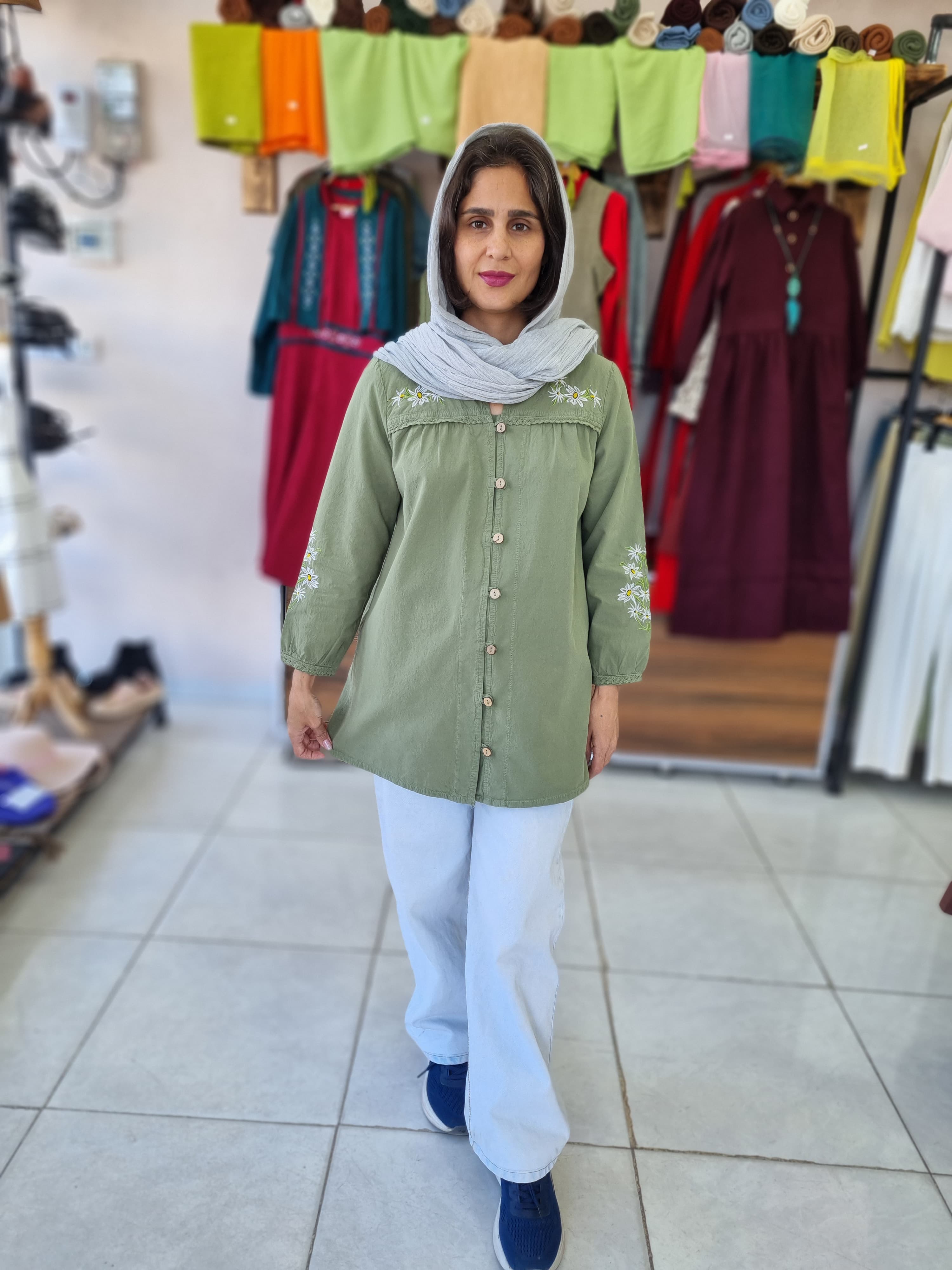 جنس الیاف طبیعی ، بدون آبرفت و رنگدهی ، دکمه خور گره ای ، یقه دیپلمات ، جلو شومیز تو خط کارور برش خورده و چین دار ، جلو شومیز و آستین گلدوزی و گیپور دوزی ، سایزبندی۳۶ تا ۴۴ ، مناسب تا ۴۶ ، حتما قبل از ثبت سفارش جدول شایزبندی رو چک کنید