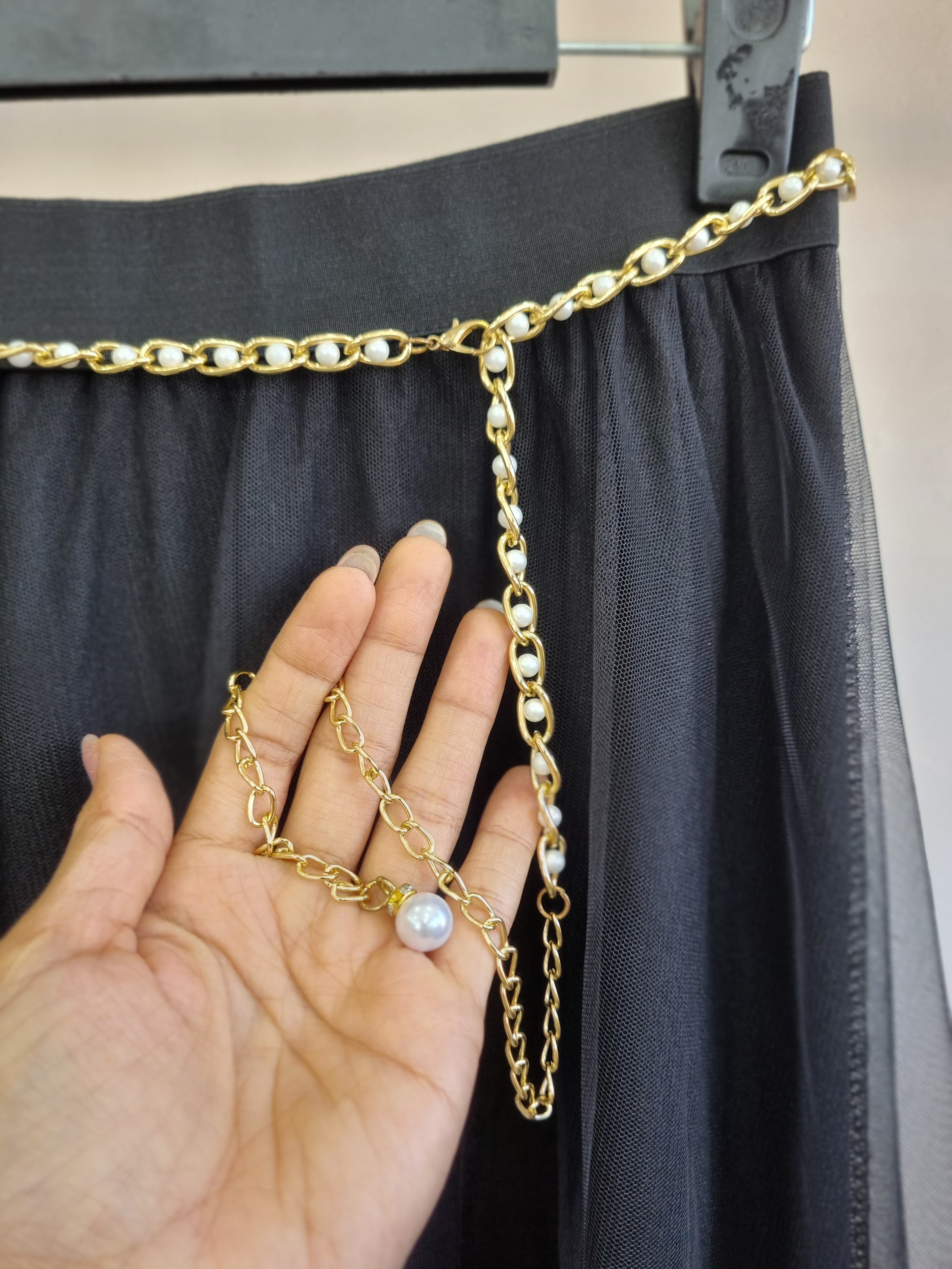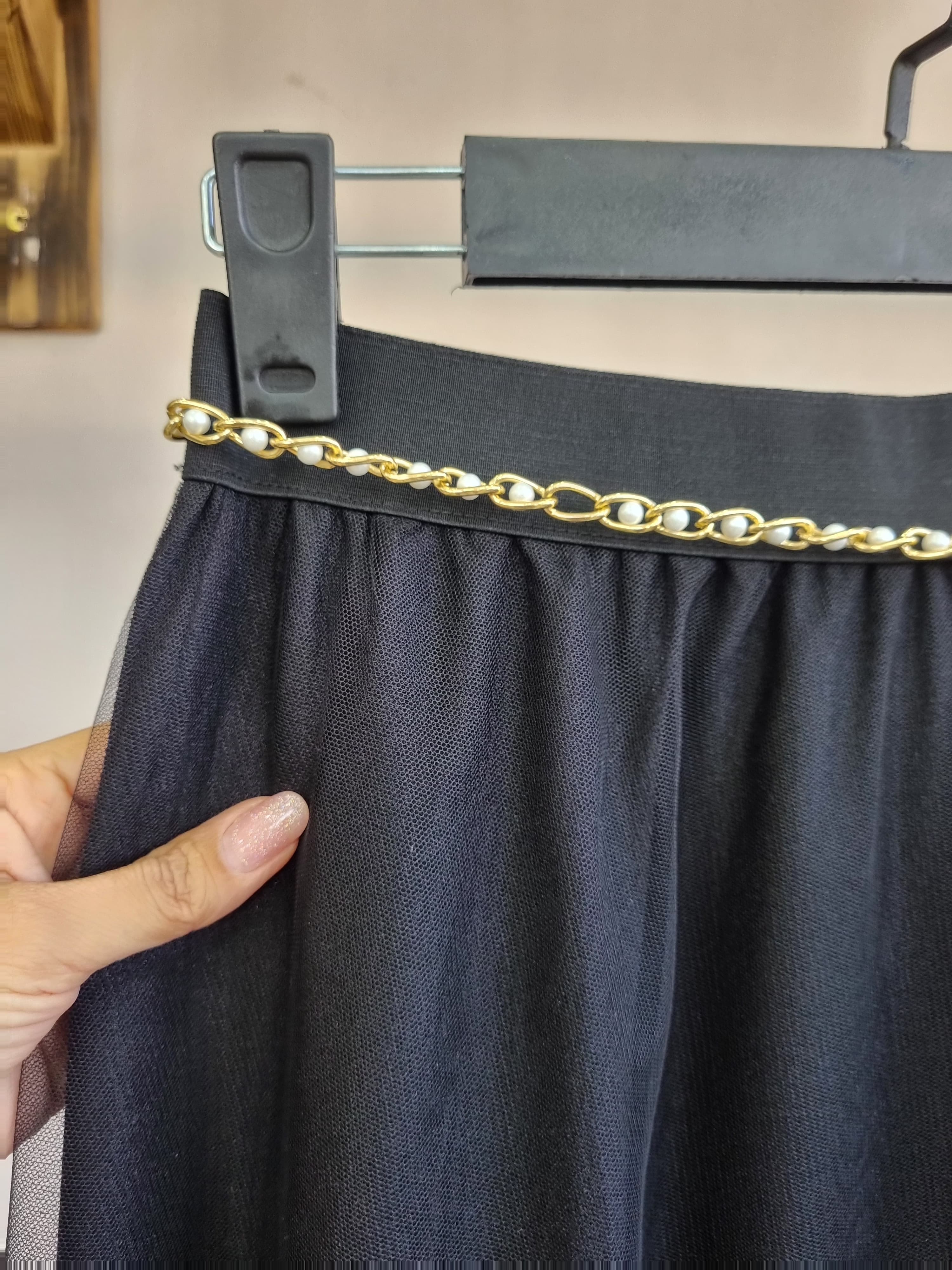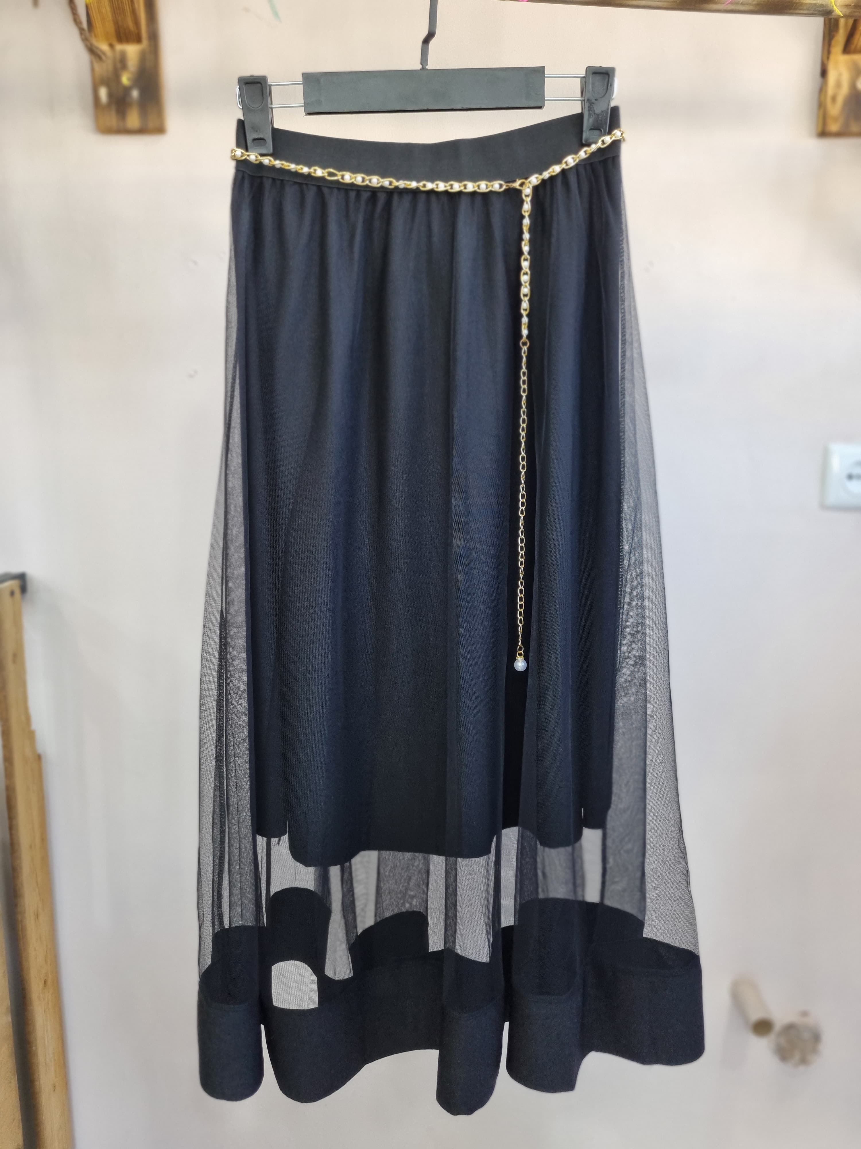 🌼جنس دامن ترکیبی تور و کرپ کش هست که آستر زیری کرپ و رویه تور کار شده پایین تور هم از جنس آستر استفاده شده ، یه مدل جذاب و مجلسی تور ، با کمربند مهره ای طلایی ، کمر دامن تماما کش ، فری سایز و مناسب تا ۴۶