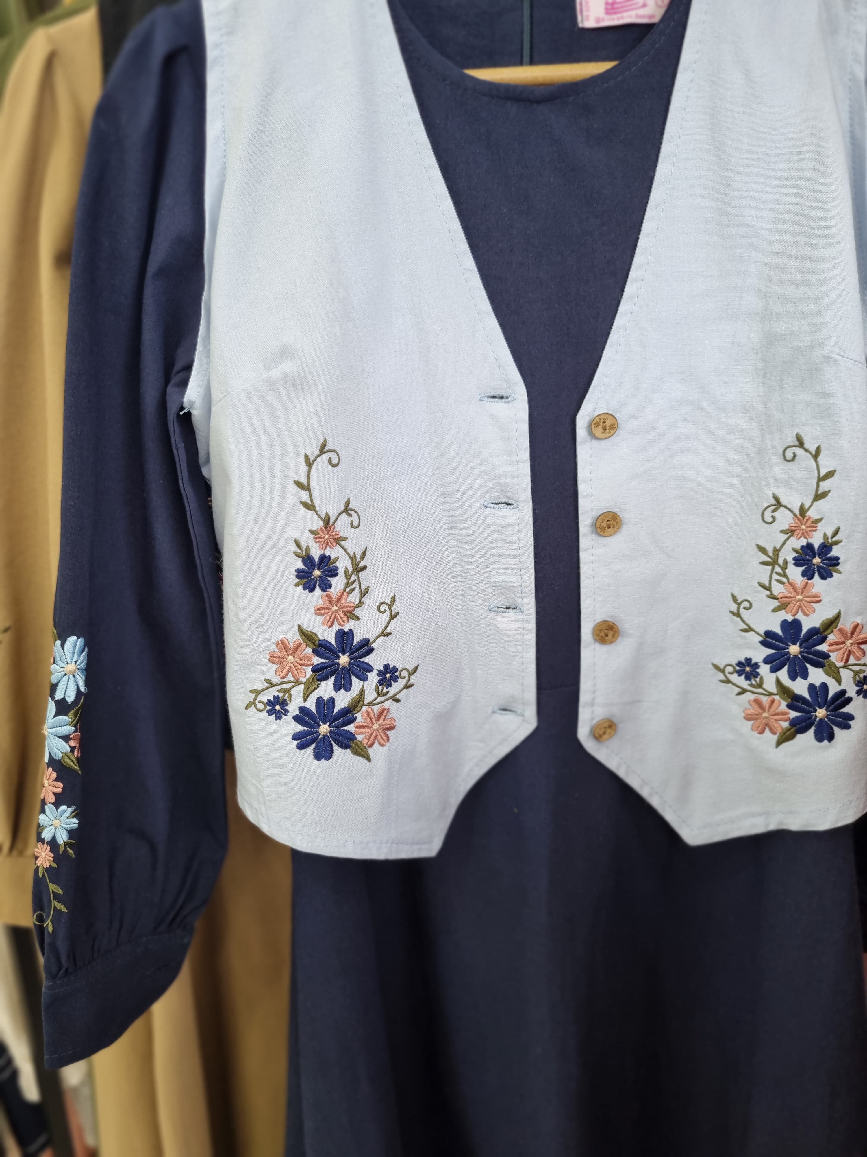🌿پیراهن و جلیقه پرگل🤑قیمت با احترام ۱۹۵۰🌼جنس لینن ، پیراهن از پشت زیپ مخفی داره آستین هاش گلدوزی شده است و آستین دکمه خور هست ، جلیقه دکمه خور و گلدوزی شده ، ۴ سایز ، مناسب ۳۸ تا ۴۸ ❤️مناسب برای روزمره ، مهمونی ، و استایل های متفاوت