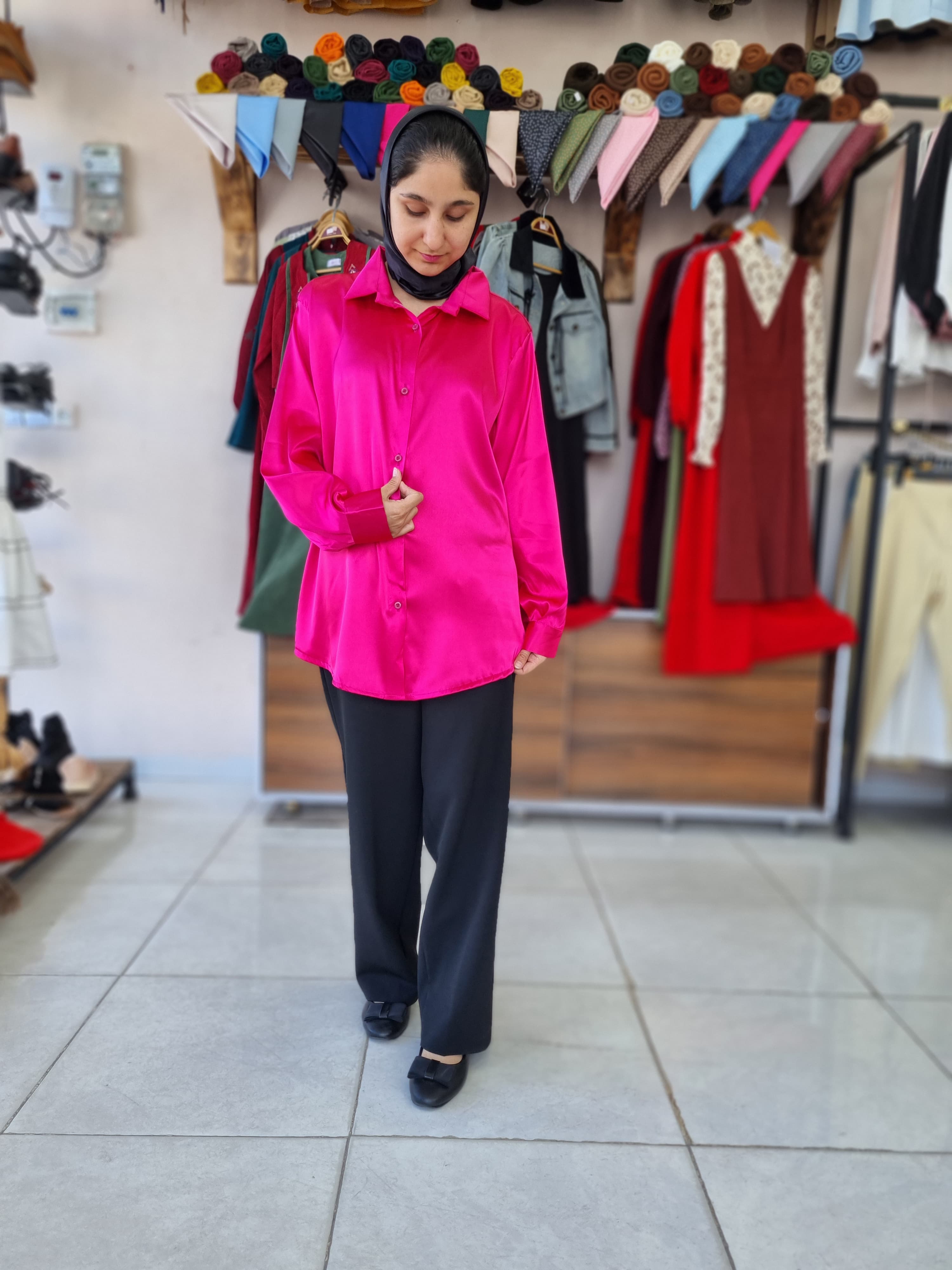 جنس ساتن گرم بالا ، یقه مردانه ، آستین دکمه ، دو سایز ، مناسب ۳۸ تا۴۶ ، حتما جدول سایزبندی رو چک کنید ، ترجیحا با مواد شوینده بدون آنزیم شسته شود