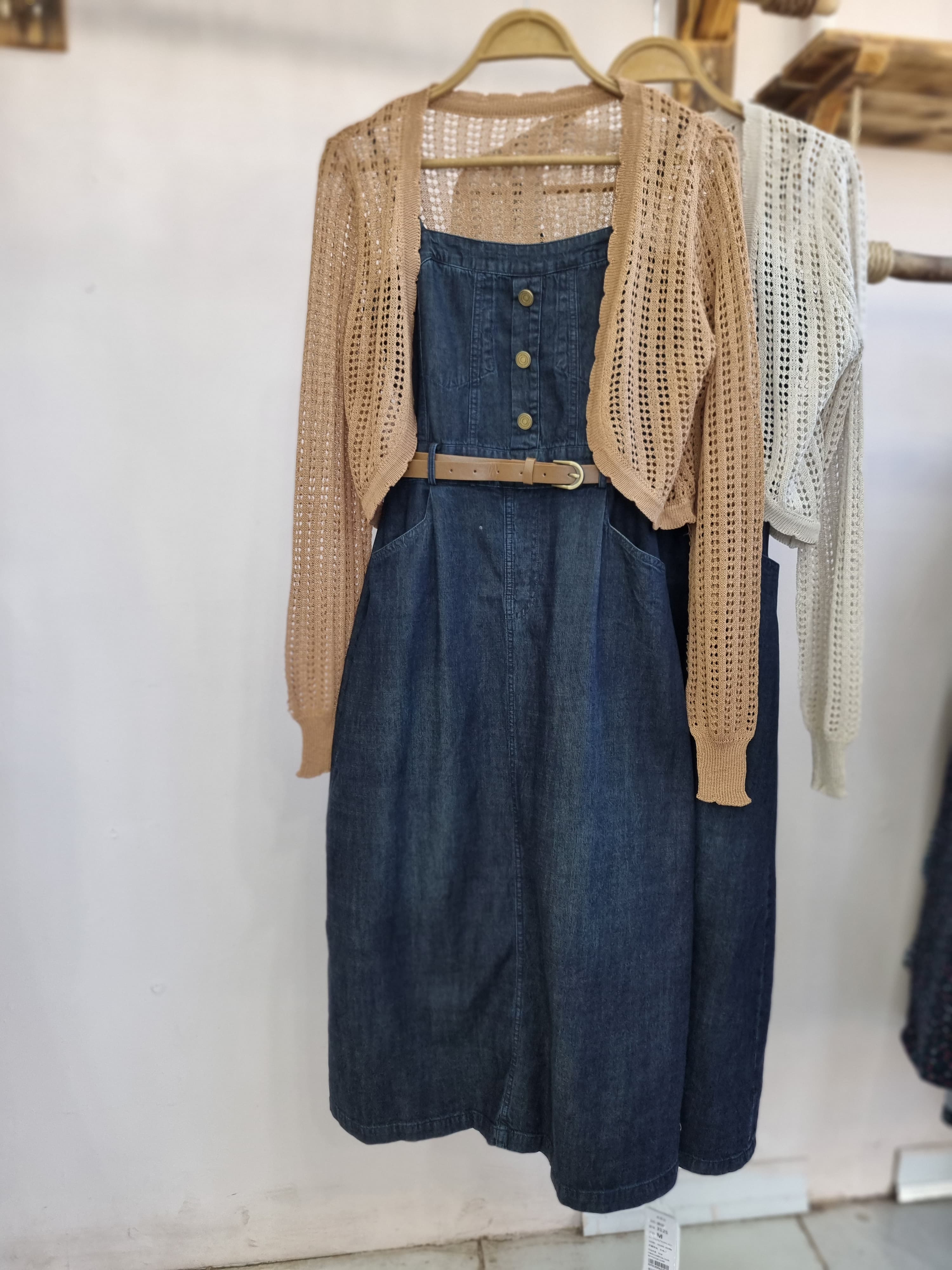 سارافون لی رویه قلاب بافی وارداتی ، بند قابل تنظیم ، پشت سارافون تیکه سینه فقط کش دوزی ، کمر برش خورده و جلو سارافون پیله دار و جیب دار ، کمربند دار، پشت سارافون جیب و چاک داره ، جلوسارافون دکمه نما ، پهلو سارافون زیپ مخفی ، ۴ سایز ، مناسب ۳۶ تا ۴۶ ، حتما جدول سایزبندی رو چک کنید