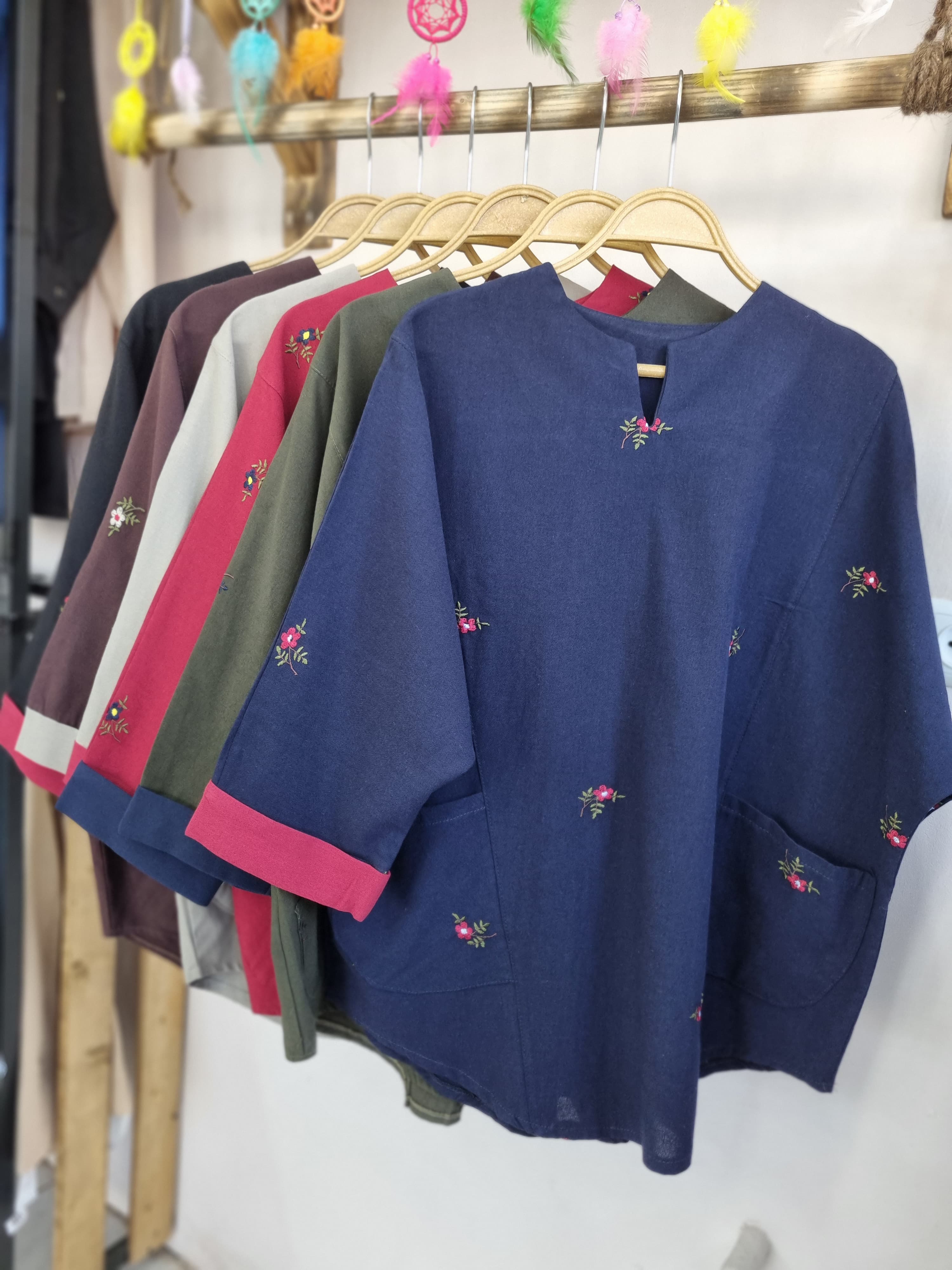 جنس لینن ، بدون آبرفت و رنگدهی ، تماما گلدوزب شده ، دوجیب روی تونیک ، آستین کیمونو و دم دست پاکتی ، فری تا سایز ۴۴ گاها ۴۶ ،حتما اندازه ها رو از جدول سایزبندی چک کنید